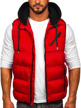 Gilet spesso trapuntato bilaterale con cappuccio da uomo rosso-nero Bolf 7127