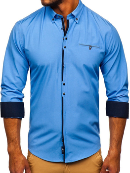 Camicia elegante a manica lunga da uomo celeste Bolf 8840-1