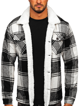 Giacca di jeans trucker isolata con collo di montone da uomo nera Bolf 1160