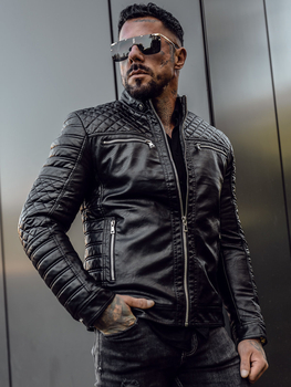 Giacca in pelle da uomo nera Bolf 11Z8025
