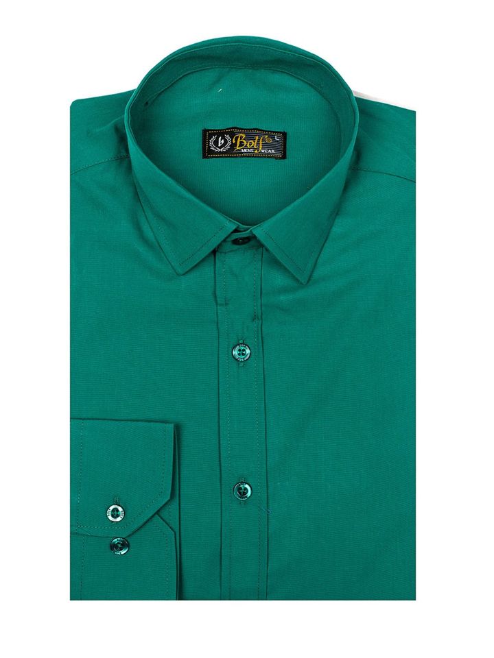 Camicia elegante a maniche lunghe da uomo in colore verde scuro Bolf 1703 è una posizione che dovrebbe essere nel guardaroba di ogni uomo, non solo di un uomo elegante. Questo modello è disponibile in una dozzina di colori più o meno intensi, che lo rendono facile da inserire in innumerevoli abiti casual e smart casual. La camicia da uomo liscia è consigliata agli amanti del minimalismo e dell'eleganza classica nella moda. Sono comode e ben tagliate. Un vero must nel guardaroba di un uomo d'affari consapevole. Un taglio semplice e classico in colori interessanti rende questo modello di camicia il tocco finale perfetto per molti stili di tutti i giorni. Camicia dal taglio slim fit, abbottonata, ha un pratico fondo arrotondato. Le maniche sono rifinite con polsini larghi e regolabili che si chiudono con un bottone. Ha un colletto classico con risvolti corti.