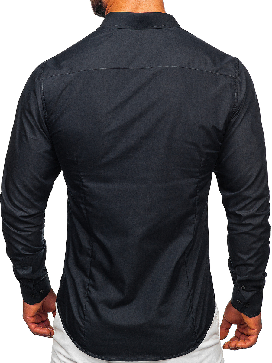 Camicia elegante a maniche lunghe da uomo in colore grafite Bolf 1703 è una posizione che dovrebbe essere nel guardaroba di ogni uomo, non solo di un uomo elegante. Questo modello è disponibile in una dozzina di colori più o meno intensi, che lo rendono facile da inserire in innumerevoli abiti casual e smart casual. La camicia da uomo liscia è consigliata agli amanti del minimalismo e dell'eleganza classica nella moda. Sono comode e ben tagliate. Un vero must nel guardaroba di un uomo d'affari consapevole. Un taglio semplice e classico in colori interessanti rende questo modello di camicia il tocco finale perfetto per molti stili di tutti i giorni. Camicia dal taglio slim fit, abbottonata, ha un pratico fondo arrotondato. Le maniche sono rifinite con polsini larghi e regolabili che si chiudono con un bottone. Ha un colletto classico con risvolti corti.