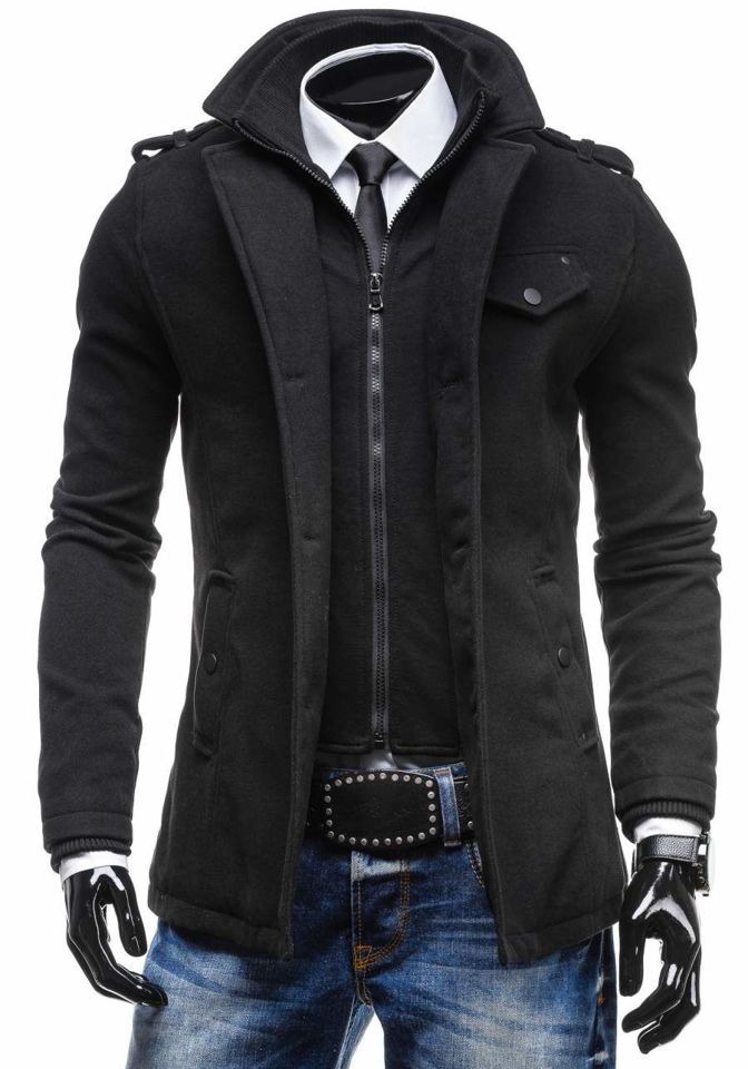 Cappotto da uomo Bolf 8853C è un sensazionale cappotto monopetto di colore nero. È pratico e senza tempo, un must have indiscutibile nel guardaroba maschile. Un cappotto invernale nero migliorerà in modo fantastico sia l'aspetto quotidiano che le stilizzazioni più eleganti. Sarà una soluzione ideale per le giornate fredde, proteggerà perfettamente dal freddo e dal vento. Il cappotto è allacciato con cerniera e bottoni, ha un classico colletto rovesciato e un secondo collo alto, che, fissato al collo, protegge ulteriormente dal freddo sgradevole. Il cappotto ha anche un pettorale efficace ed elegante, coperto da una patta e allacciato con un forte bottone automatico. Inoltre, il prodotto ha tre pratiche tasche esterne chiuse con bottoni a pressione e una tasca interna per riporre le cose più preziose, come un portafoglio o le chiavi.
