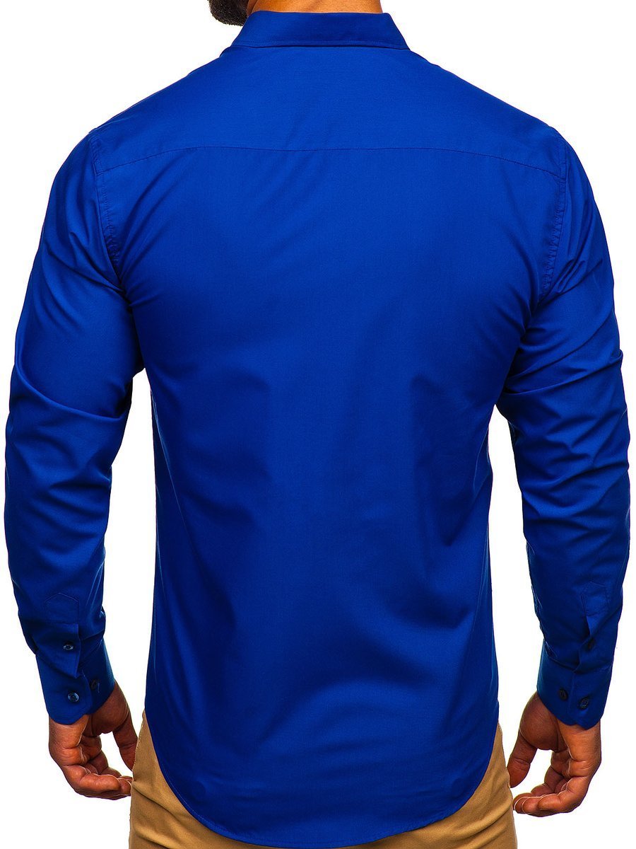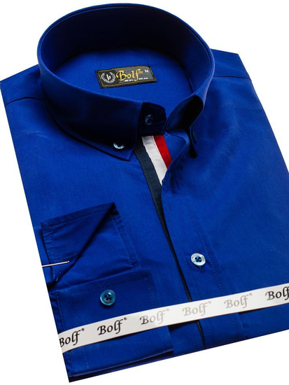 L'elegante camicia maschile tipo slim fit da Bolfcon colletto tipo button down. Ha un moderno colore cobalto e il fondo arrotondato. La camicia cobalto da uomo è ben abbinata e si presenterà perfettamente con gli outfit con blazer, chino e cravatta. Ideale per tutti i giorni e per le occasioni speciali.