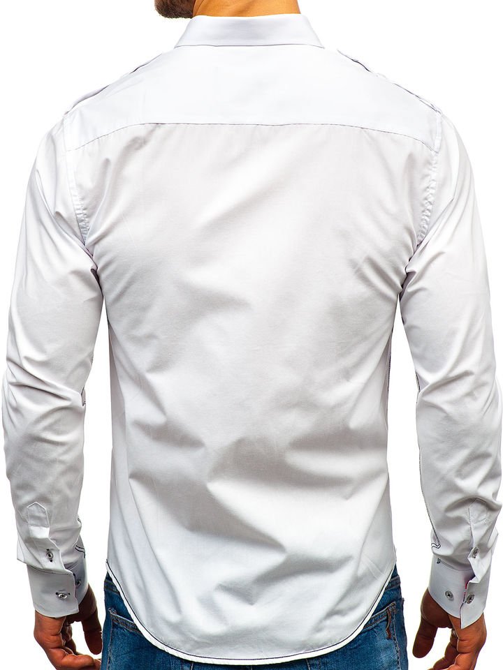 La classica camicia bianca slim fit dalla Bolf con spalline sulle spalle. Insostituibile se vuoi creare un'aspetto moderno per vari occasioni. Camicia bianca a manica lunga è un modello casual. Comoda, di stile che snellisce la silhouette. Creà una coppia perfetta con i jeans.