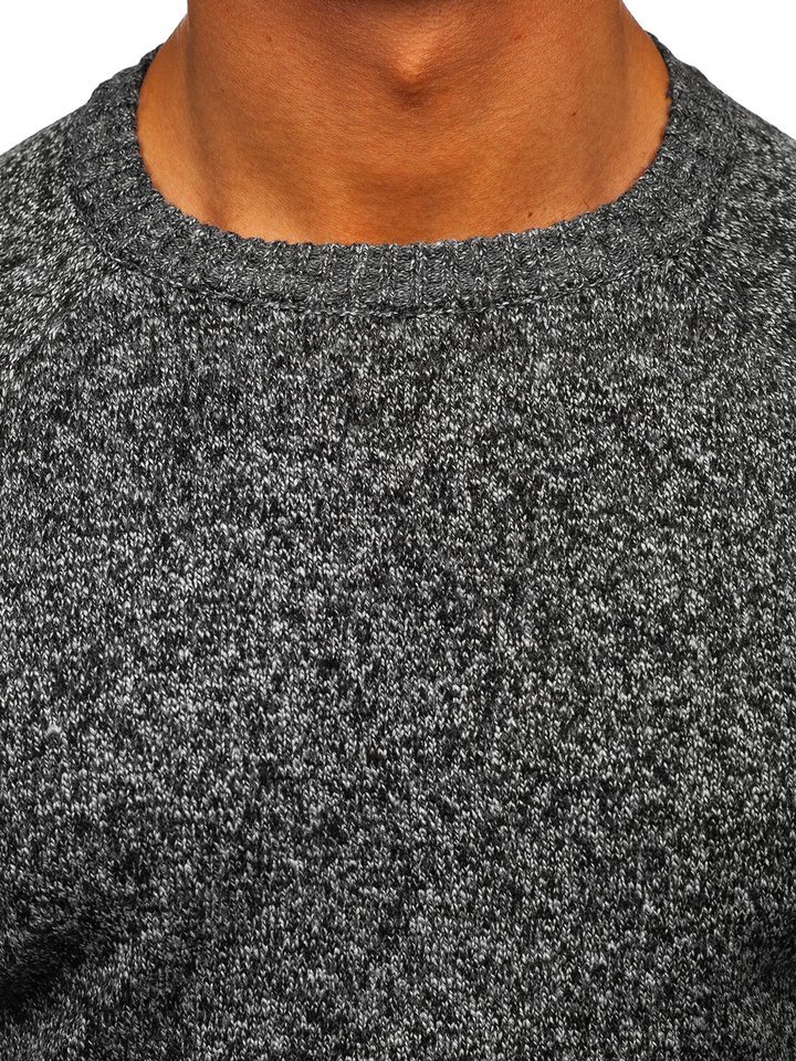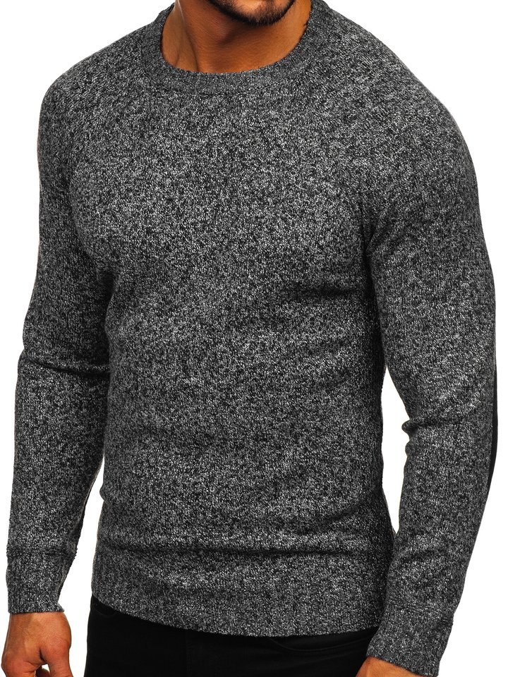 Il maglione maschile della collezione Bolf in colore grigio. E' un modello infilabile dalla testa, con la scollatura rotonda e le maniche e la parte inferiore rifinita con bordi elastici. Il maglione grigio ha cuciture di moda. Il maglione grigio si abbina bene su ogni tipo di silhouette. Si combina perfettamente con i jeans,jogger o pantaloni cargo