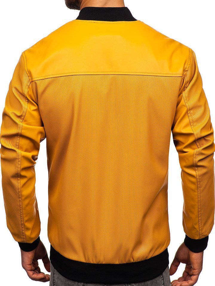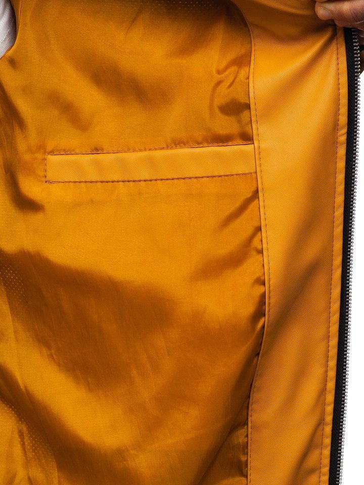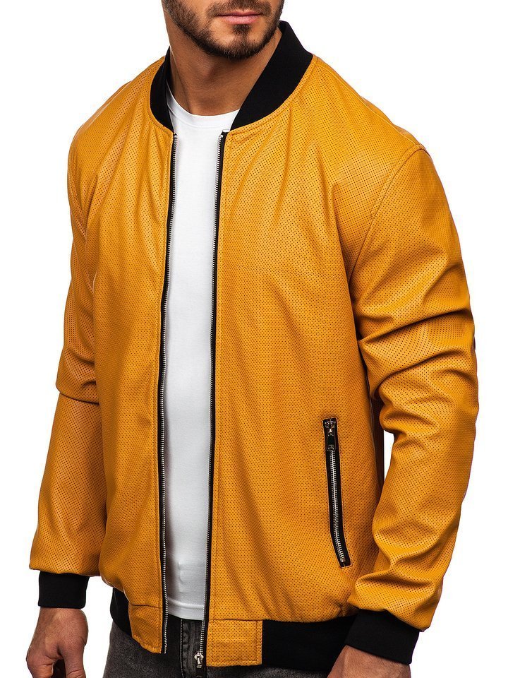 Giacca in pelle da uomo 6125 in colore cammello, grazie a cui è distintiva e notevole. La giacca è realizzata in pelle ecologica. E' chiusa con la cerniera ed ha il collo alto Le maniche, il collo e la parte inferiore sono rifiniti con larghi bordi elasticizzati. QUesto modello ha due tasche esterne chiuse a zip e una tasca interna senza serratura.