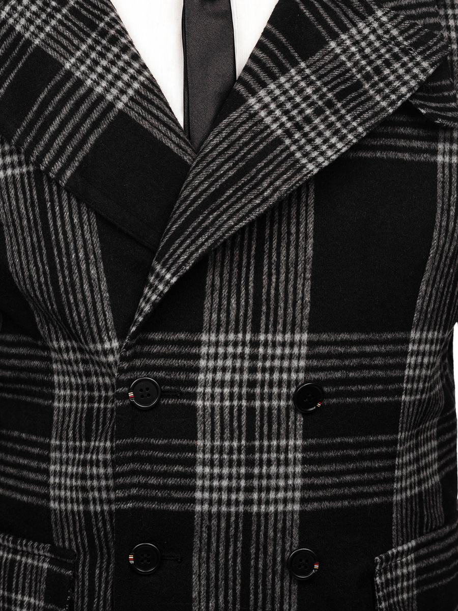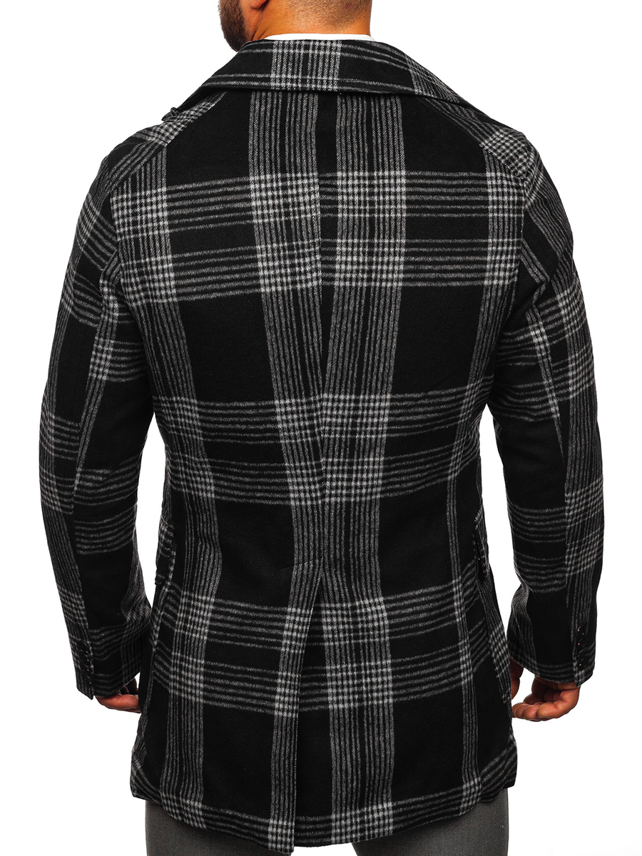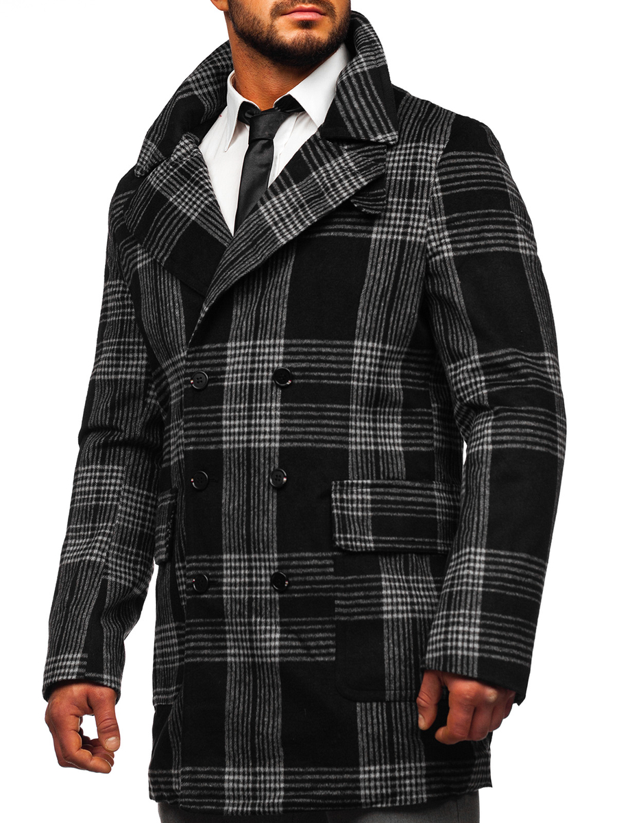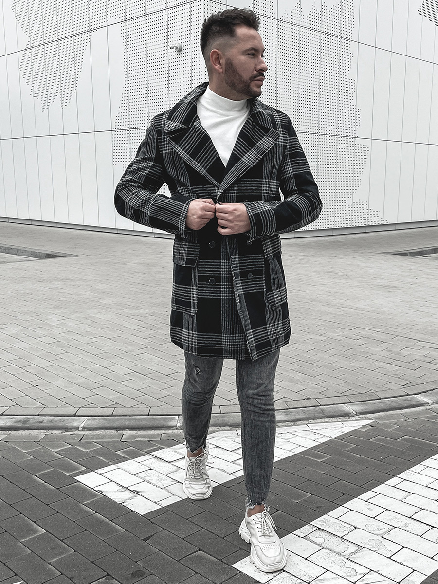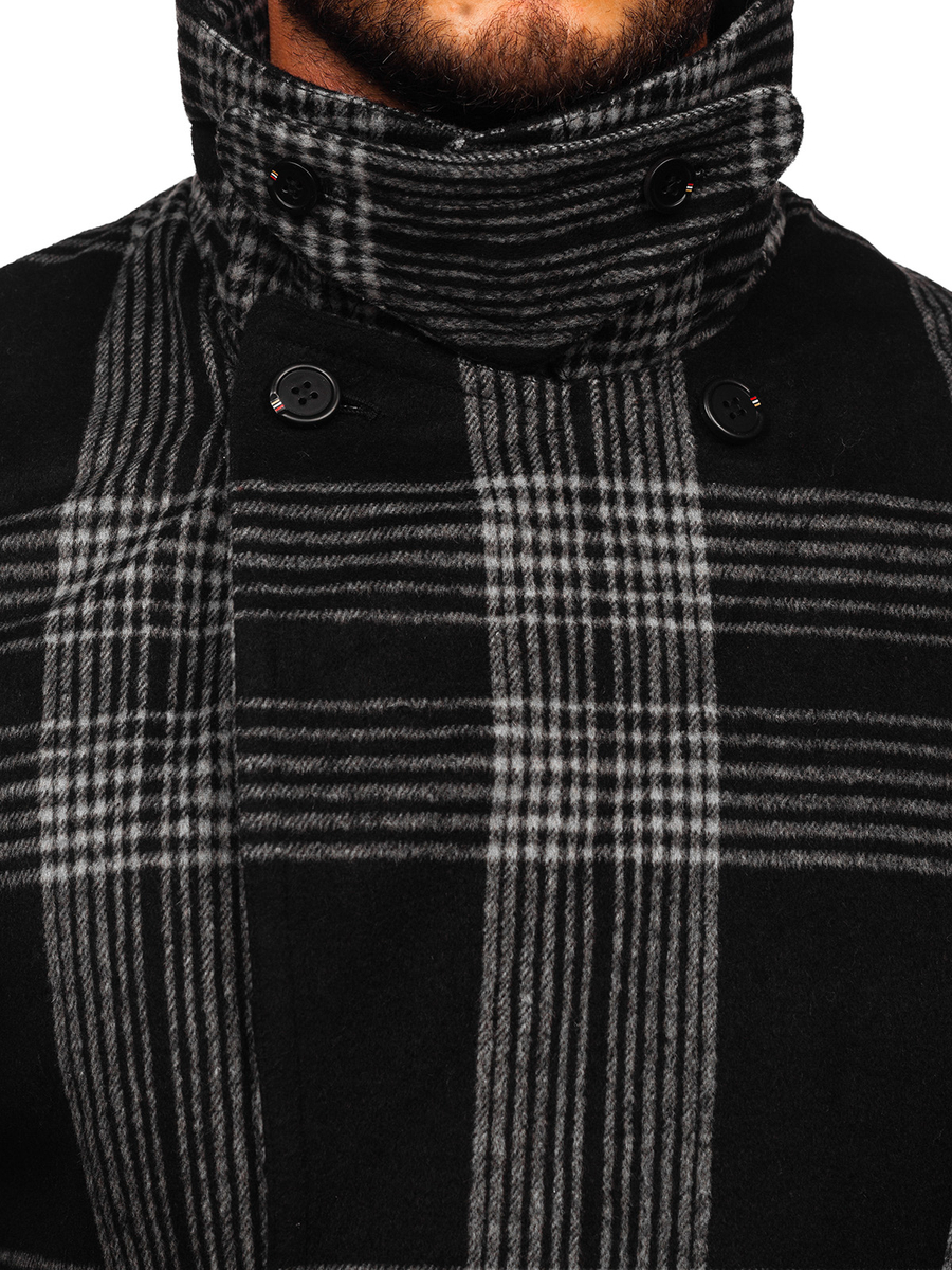 Il cappotto invernale isolante nero da uomo Bolf 1193 è un abbinamento perfetto per il guardaroba di un uomo elegante e alla moda. È un classico cappotto doppiopetto isolante, chiuso con bottoni. Il suo carattere è esaltato da un ampio ed elegante collo rovesciato. Ha due tasche esterne chiuse con bottoni a pressione e una tasca interna chiusa con un bottone, in cui puoi nascondere i gingilli più importanti e preziosi o un portafoglio. Gli elementi decorativi sono bottoni cuciti alle estremità delle maniche. Il cappotto è realizzato in tessuto di alta qualità. È molto originale, ma grazie al materiale a scacchi ha anche un'eleganza senza tempo. Si combina perfettamente con i chino,camicia e giacca d'abito. Abbinalo a jeans e dolcevita per un look casual.