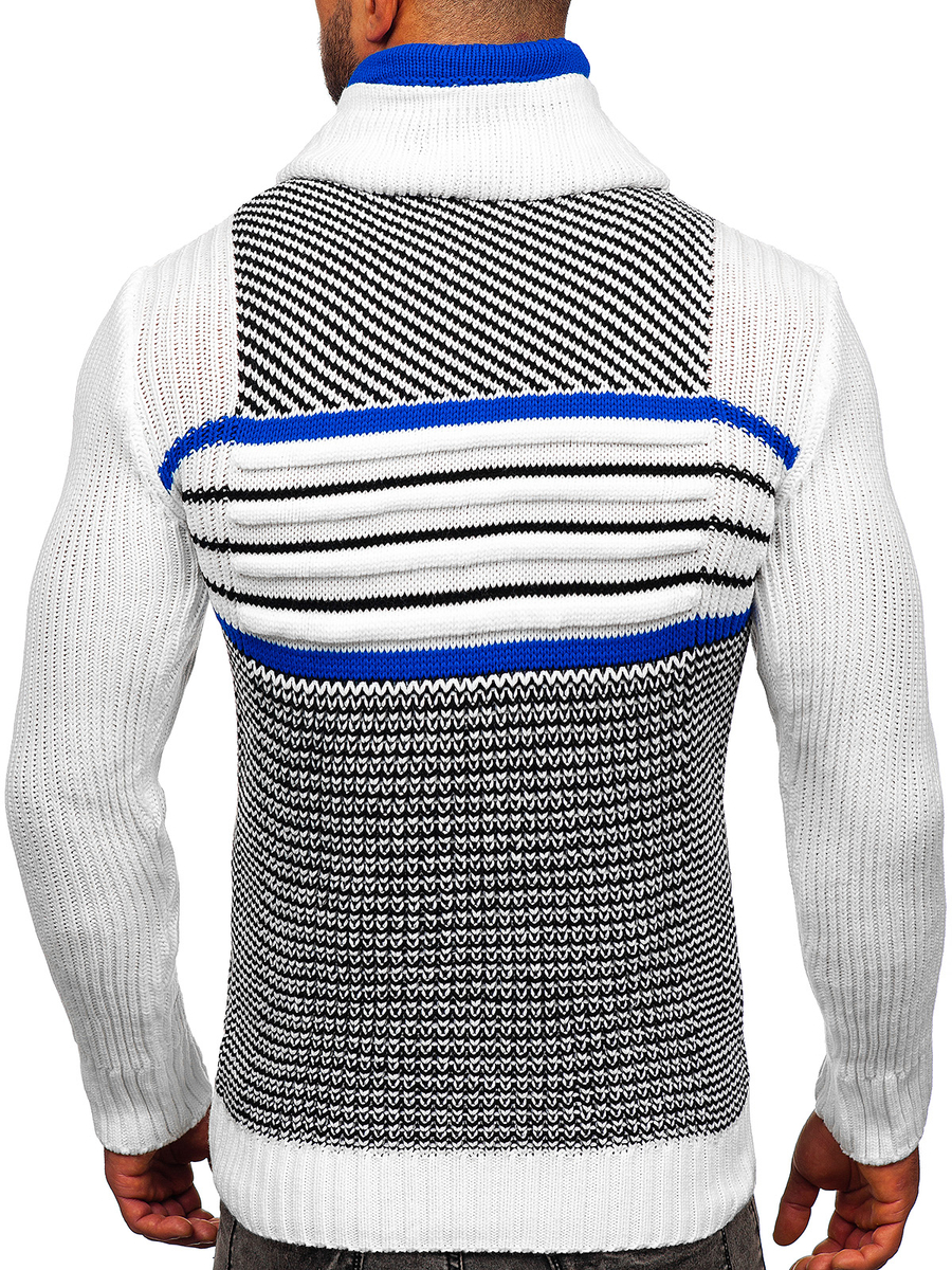 Il maglione da uomo bianco spesso con collo alto di Bolf 2000 è la nostra proposta per i giorni più freddi. Il prodotto ha un colletto originale, regolabile con cerniera, stringhe e bottoni automatici. La costina è rifinita sul fondo e sulle maniche, sottolineandone il carattere casual. Grazie ai polsini, il maglione si adatta perfettamente ad ogni figura. Il taglio aderente fa sembrare tutti eccezionalmente vantaggiosi. Il prodotto è realizzato in un tessuto delicato, piacevole al tatto che si adatta perfettamente al corpo. Materiale 70% acrillo e 30% lana. Motivi unici e caratteristici aggiungono originalità. Un maglione classico si abbinerà perfettamente con i jeans e giacca in pelle. Puoi abbinarlo con i jogger e felpa per un look più sciolto.