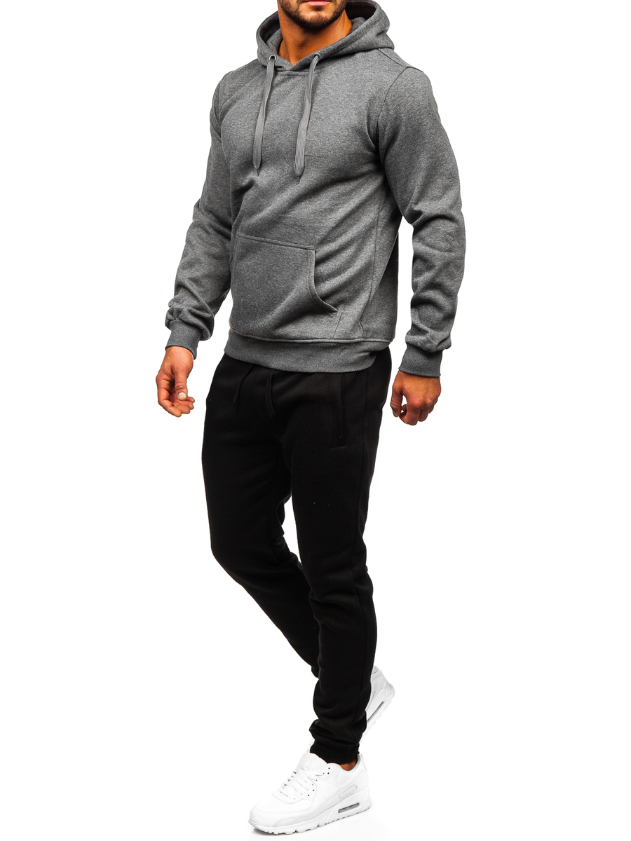 La tuta sportiva con cappuccio da uomo Bolf D002 in colore antracite è una tuta sportiva perfetta per le attività all'aperto e in palestra.. Il set include una felpa e pantaloni della tuta. La felpa con cappuccio ha una tasca tipo canguro. I pantaloni sono regolabili in vita con un robusto guardolo e coulisse, e hanno due tasche sui lati. Un taglio semplice e aderente conferisce loro un aspetto sportivo. Questo modello è realizzzato in tessuto delicato e piacevole al tatto. Un set di tuta può essere una base universale per costruire stilizzazioni quotidiane o sportive. Sia la felpa che i pantaloni possono essere abbinati ad altri capi di abbigliamento, ottenendo così tante possibilità per creare styling di tutti i giorni. Il set si adatterà perfettamente con una T-shirt una leggera giacca mezza stagione o sportiva. Le tute sono consigliate per essere indossate a casa, durante una passeggiata, durante lo shopping o durante lo sport in palestra o all'aperto.