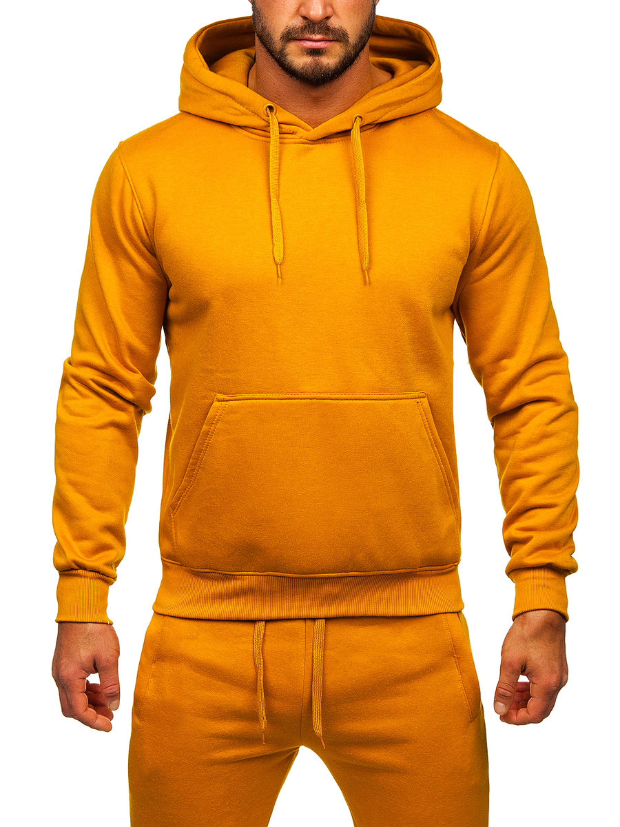 La tuta da uomo in colore cammello con cappuccio Bolf D003 è una tuta sportiva perfetta per tutte le attività sportive. Il set include una felpa con cappuccio e pantaloni della tuta. I pantaloni sono regolabili in vita con un robusto guardolo e coulisse, e due tasche sui lati. Un taglio semplice e aderente conferisce loro un aspetto sportivo. Questo modello è realizzzato in tessuto delicato e piacevole al tatto. Un set di tuta può essere una base universale per costruire stilizzazioni quotidiane o sportive. Sia la felpa che i pantaloni possono essere abbinati ad altri capi di abbigliamento, ottenendo così tante possibilità per creare styling di tutti i giorni. Il set si adatterà perfettamente con una T-shirt una leggera giacca mezza stagione o sportiva. Le tute sono consigliate per essere indossate a casa, durante una passeggiata, durante lo shopping o durante lo sport in palestra o all'aperto.