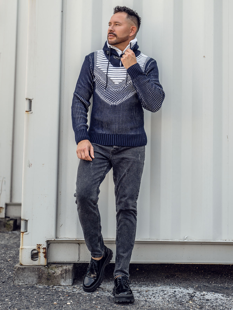 Il maglione da uomo blu spesso con colletto rialzato Bolf 2027 è un maglione classico per seguire le tendenze della moda. Un maglione fantasia con collo regolabile con cerniera, stringhe e bottoni a pressione darà carattere a qualsiasi stile. Il fondo e le maniche sono rifiniti con un guardolo, che sottolinea la natura casual del prodotto. Grazie ai polsini, il maglione si adatta perfettamente ad ogni figura. Il taglio aderente fa sembrare tutti eccezionalmente vantaggiosi. Il prodotto è realizzato in un tessuto delicato, piacevole al tatto che si adatta perfettamente al corpo. Il materiale è 70% acrilico e 30% lana. Indossalo al lavoro, a scuola, al cinema, per un appuntamento, per una passeggiata o per un incontro con gli amici: non importa quale sia l'occasione, starai sempre benissimo. Il maglione classico starà benissimo con jeans e giacca di pelle , creando l'outfit perfetto per una uscita con gli amici. Si può abbinare con i jogger e felpa, creando uno stile più sciolto.