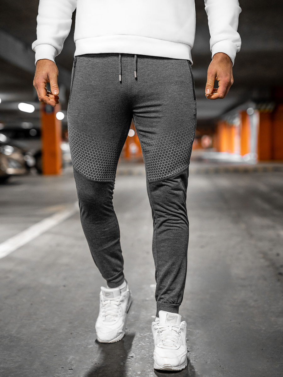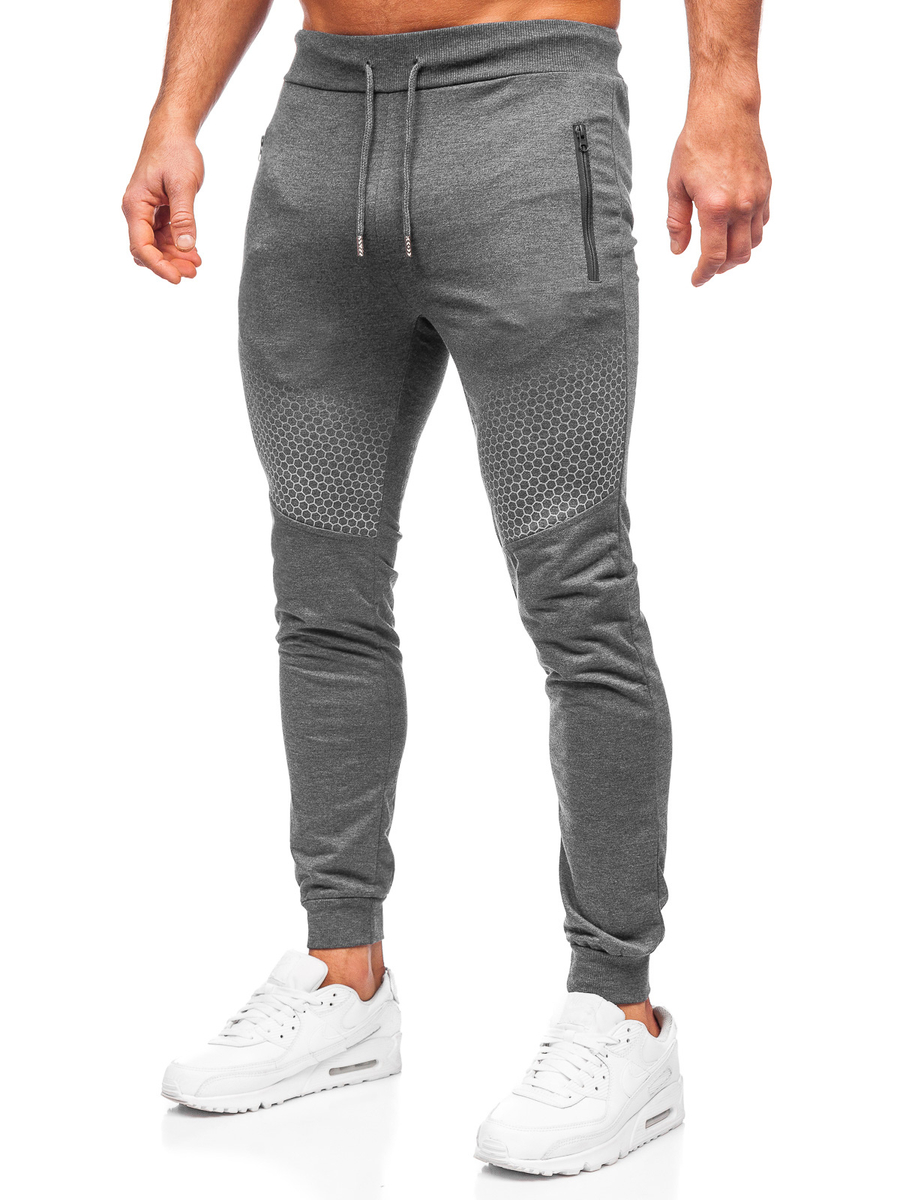 I pantaloni della tuta grafite da uomo della Bolf HW2351 sono la scelta perfetta in qualsiasi stagione. I pantaloni sono regolabili in vita con un cordino e un robusto guardolo, grazie al quale puoi regolarli per adattarsi perfettamente alla tua figura. Ci sono due tasche sul davanti, con cerniera e una tasca aggiuntiva sul retro. Un taglio semplice conferisce loro un aspetto sportivo e polsini alle gambe, che allo stesso tempo ti tengono al caldo nelle giornate più fredde. Questo modello si distingue per s tampe decorative sulle gambe. Questo modello è realizzato in tessuto delicato e piacevole al tatto, che si abbinerà perfettamente al corpo. Puoi indossarli in palestra, fare una passeggiata o incontrare gli amici. Abbinali a una giacca di pelle e a una manica lunga per un look urbano. Perfetti per felpa e t-shirt creando un outfit sportivo.