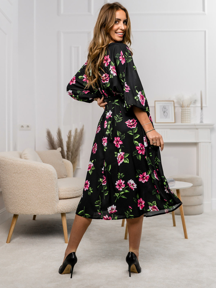 L'abito lungo a fiori da donna nero-rosa Bolf XY202116 è un abito estremamente femminile che ti accompagnerà in ogni stagione. Un abito floreale con elastico in vita, si adatta perfettamente alla figura. Le maniche rifinite con un elastico con una lunghezza di 3/4, gli conferiscono un carattere unico. Il materiale piacevole al tatto dona un senso di praticità e comfort durante l'uso. Inoltre, l'abito ha una parte posteriore, chiusa con un bottone. Puoi indossarlo per una passeggiata, al cinema o al lavoro. Sembrerai sbalorditivo in un appuntamento o quando incontrerai gli amici. Durante un'uscita serale, abbina l'abito a un cappotto che aggiungerà sicuramente carattere al tuo outfit.