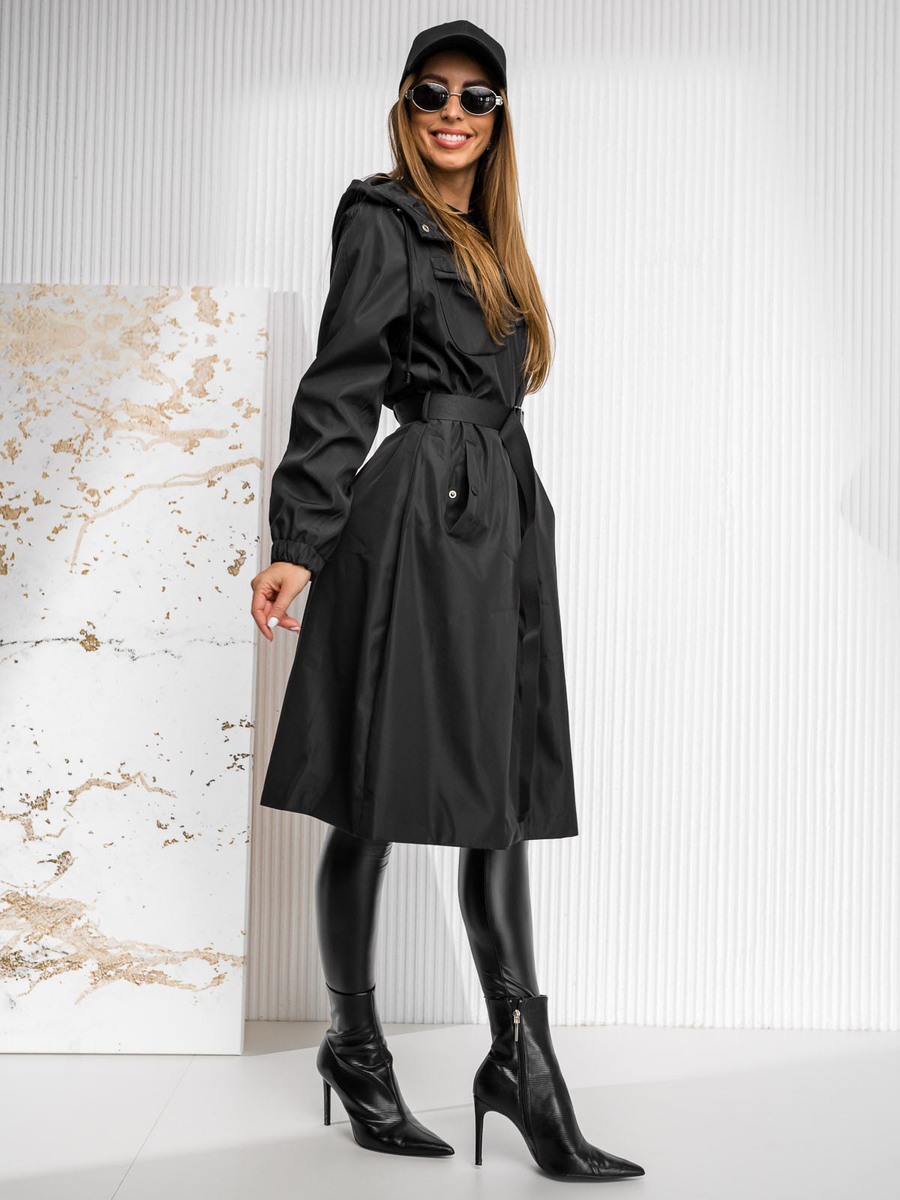 Cappotto lungo nero giacca mezza stagione con cappuccio da donna Bolf AG5019 è il nostro suggerimento affidabile per la stagione di transizione. Pratica giacca con cappuccio, fissata con bottoni a pressione. È un cappotto molto pratico con cintura regolabile in vita. Ha due tasche esterne con chiusura a scatto e un taschino sul petto con cerniera. Materiale di ottima qualità, dà un senso di comfort e praticità durante l'uso. Starai benissimo in esso, non importa quali siano le circostanze. Per un'uscita serale in città, abbinalo a jeans e un maglione o vestito per un carattere elegante del tuo outfit.