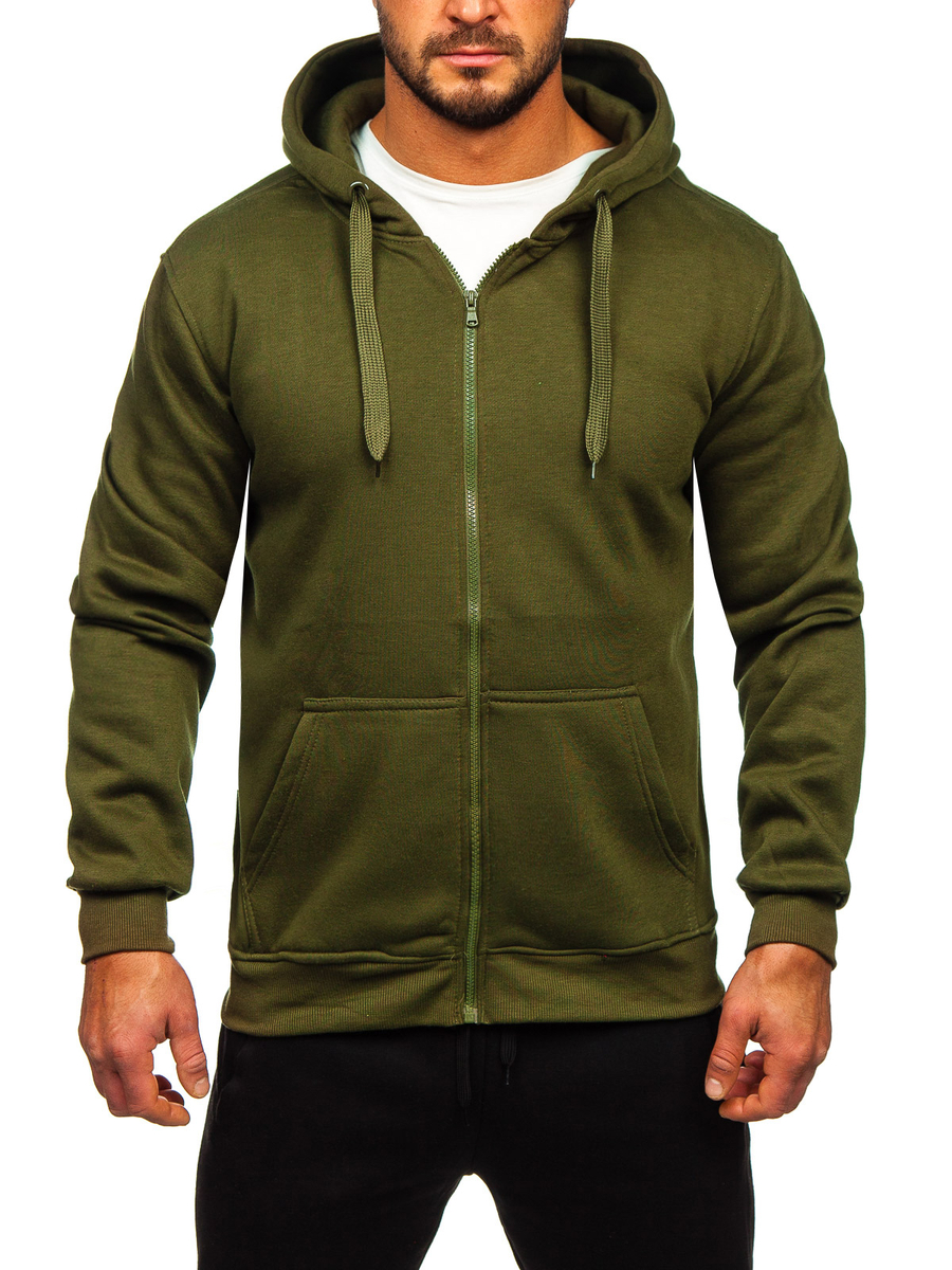 La tuta da uomo verde oliva con cappuccio e zip Bolf D004 è la scelta perfetta per ogni occasione e stagione. Il set include una felpa con cappuccio e pantaloni della tuta. Felpa dal taglio classico, allacciata con cerniera. Ha un pratico cappuccio e due tasche laterali. Il fondo e le maniche della felpa sono rifiniti con un guardolo, che fornisce calore e protezione dal vento nelle giornate più fredde. I pantaloni sono regolabili in vita con un forte guardolo e coulisse, e due tasche sui lati. Un taglio semplice e aderente conferisce loro un aspetto sportivo. Questo modello è realizzzato in tessuto delicato e piacevole al tatto. Un set di tute può essere una base universale per la costruzione di stilizzazioni quotidiane o sportive. È disponibile in una dozzina di diverse versioni di colore. Grazie a un'ampia gamma di colori, non solo sceglierai qualcosa per te, ma abbinerai anche la tuta al tuo stile ogni giorno. Il set si abbinerà perfettamente a una t-shirt con una leggera giacca mezza stagione o giacca sportiva.