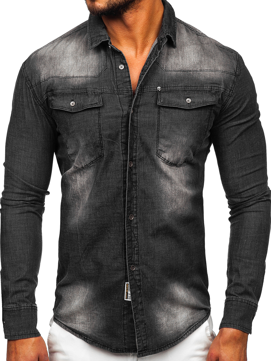 La camicia in jeans nera della Bolf MC703N è un must have nel guardaroba di ogni uomo. Intramontabile camicia in denim a maniche lunghe, abbottonata e con un tipo di colletto "Hai". Ha polsini regolabili, singoli, abbottonati. La camicia ha anche due pratiche tasche sul petto. Il taglio preferito dai nostri clienti con un fondo arrotondato si adatta perfettamente alla figura. L'elemento decorativo è una piccola applicazione a forma di teschio sulla tasca. La camicia di jeans può essere usata per molte occasioni. Perfetta per uscire con gli amici al club, così come durante una cena in famiglia. Componi il tuo look elegante con i pantaloni chino e giacca d'abito. Per un outfit più casual, scegli jeans e giacca di pelle , sarai sempre alla moda con questo stile.
