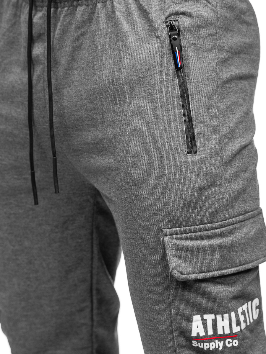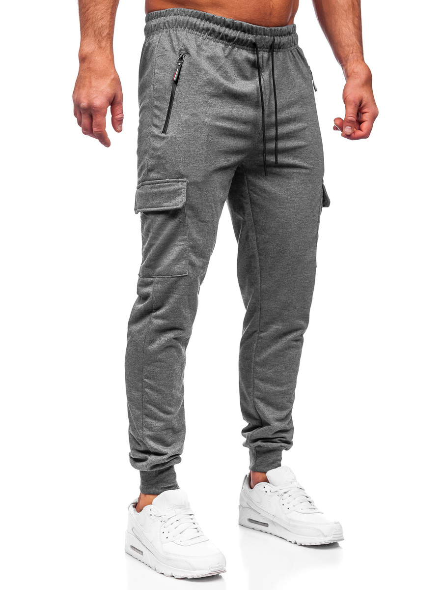 Pantaloni cargo antracite della tuta da uomo Bolf JX5061 sono una proposta per le giornate e le serate più fresche. Grazie alla regolazione in vita con un forte guardolo e un laccio, si adattano perfettamente al corpo. Un elemento molto pratico sono le quattro tasche laterali, due con cerniera e due con patta con scritta decorativa. Le gambe sono rifinite con un guardolo, grazie al quale otteniamo un taglio classico dei pantaloni cargo. Lo stile street dei pantaloni ti permette di usarli tutti i giorni, per quasi tutte le occasioni. Grazie all'ottima qualità del materiale, ti sentirai a tuo agio. Abbinali a una t-shirt , felpa e una giacca di pelle!
