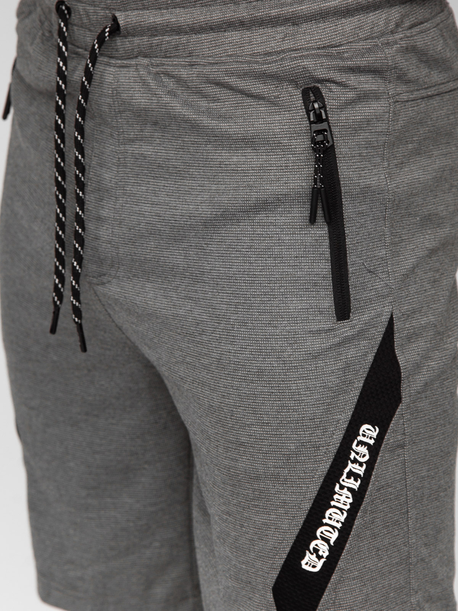 I sportivi pantaloncini corti di tuta da Bolf in colore grigio-nero. Perfetti per l'allenamento, si presenteranno fantasticamente in palestra e all'aria aperta. I pantaloncini grigio-neri sono regolabile a vita con l'elastico, hanno 2 tasche chiuse a zip ed inserti decorativi sulle gambe. Hanno anche un print espressivo sulla gamba. Indossali con una T-shirt e con scarpe sportivi.