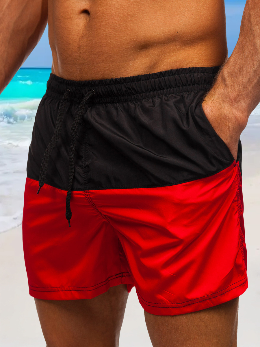 - Pantaloncini da bagno da uomo in colore nero-rosso