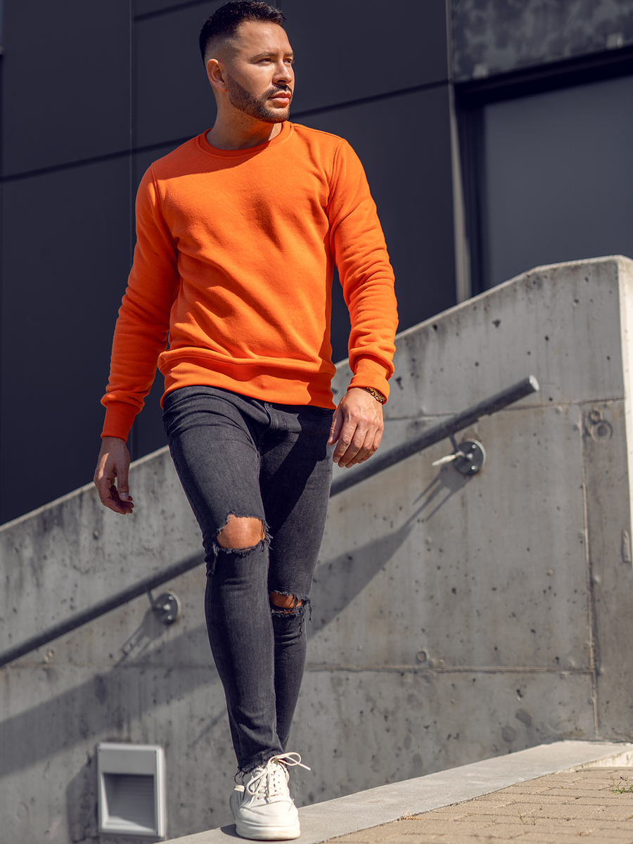 La felpa maschile senza cappuccio 2001A da Bolf in colore arancione è una proposta dalla categoria basic. Questo modello è disponibile in una dozzina di colori più o meno intensi, che lo rendono facile da abbinare a innumerevoli abiti. Le felpe sono decisamente consigliate per gli appassionati del minimalismo nella moda. Lisce, comode, ben cucite. E' un must have assoluto in ogni armadio maschile. E' un modello semplice, clasico con interessanti colori, che la rendonno una base perfetta per outfit quotidiani per ogni giorno e stili urbani. Le maniche e il fondo della felpa sono rifiniti con ampi guardoli. Il prodotto è realizzato in materiale felpato piacevole al tatto e resistente.