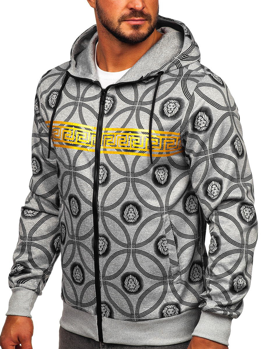La felpa con cappuccio e zip grigia da uomo Bolf 27B8123 è un classico senza tempo nello stile di tutti i giorni. Una felpa dal taglio classico con cappuccio regolabile è perfetta per gli amanti dello stile sportivo. Una stampa di design gli conferisce un carattere unico e alla moda. Il fondo e le maniche della felpa sono rifiniti con un guardolo, che fornisce calore e protezione dal vento nelle giornate più fredde. La felpa ha due tasche laterali senza chiusura. È realizzata in un materiale molto gradevole che garantirà comfort anche durante gli allenamenti più impegnativi. Stai cercando un capo sportivo? Combina una felpa con i pantaloni di tuta, t-shirt e gilet!