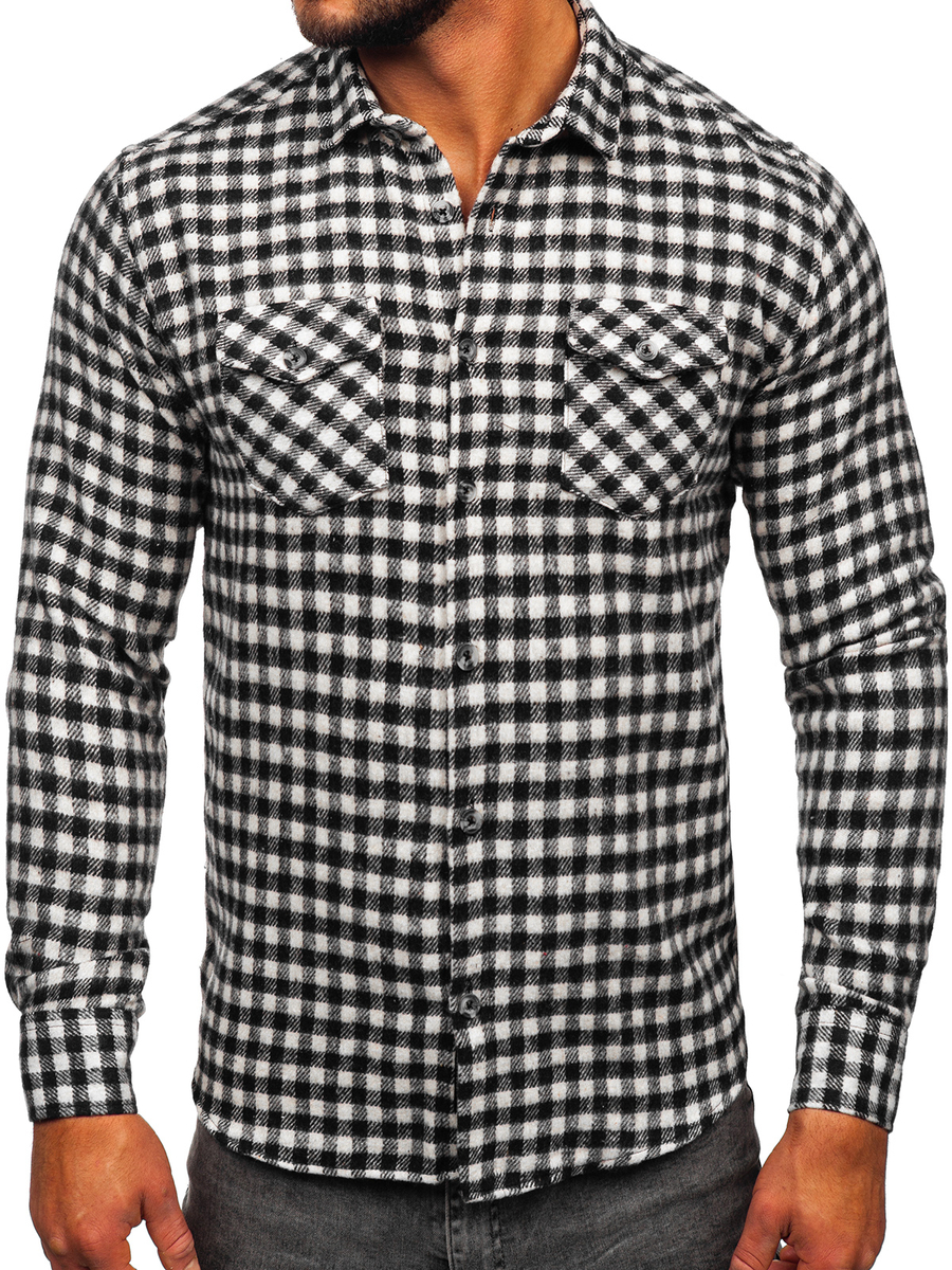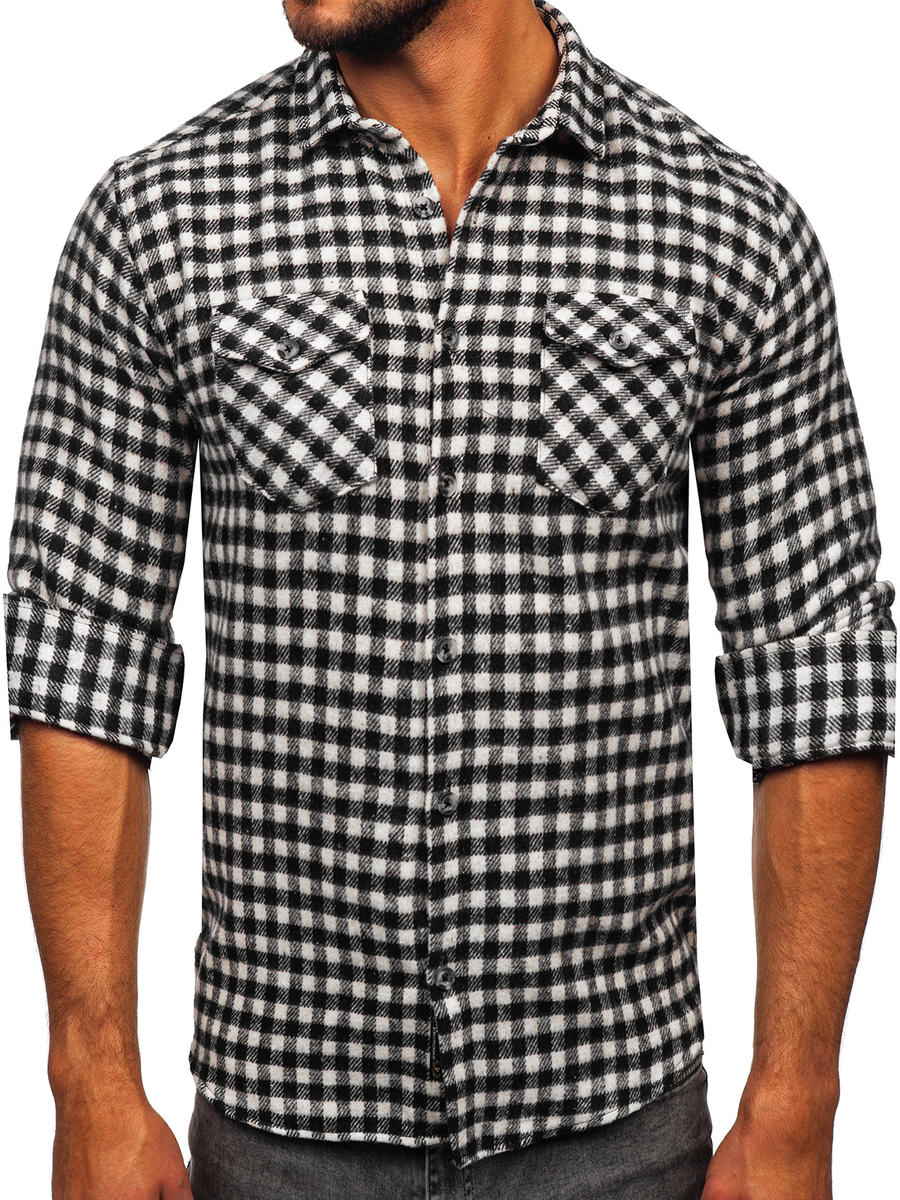 La camicia di flanella a quadri bianchi e neri da uomo a maniche lunghe Bolf 22701 è un must assoluto per ogni uomo che apprezza lo stile elegante. È disponibile in quattro colori alla moda. Una camicia a scacchi con maniche lunghe, allacciata con bottoni e ha un colletto tipo “hai”. Ha anche polsini regolabili che vengono tagliati e fissati con un solo bottone. Il prodotto è realizzato con materiali di altissima qualità, grazie ai quali è molto piacevole al tatto e incredibilmente confortevole. Ideale per ogni occasione Uscire con gli amici in un ristorante o cenare con la tua famiglia - sarai sempre ordinato ed elegante. Componi il tuo abbinamento perfetto con chino. Scegli per un look più casual un jeans egiacca in pelle.