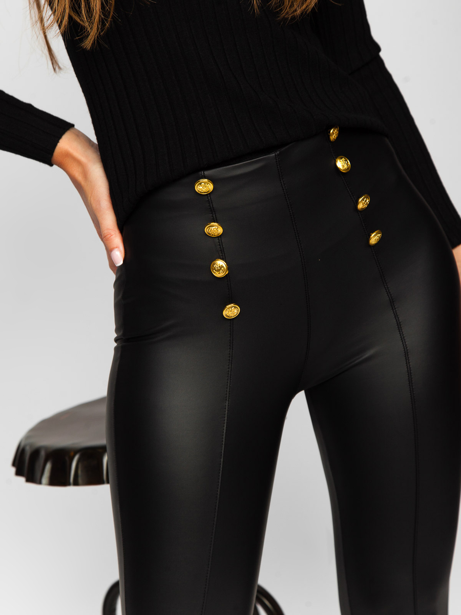 I leggings neri da donna Bolf J52958 sono un'offerta per le donne che apprezzano il bell'aspetto e lo stile. Realizzati in una combinazione di poliestere, poliuretano ed elastan. Sono flessibili e comodi da indossare. Sottolineano bene la figura e slanciano le gambe. La coulisse integrata in vita impedisce ai leggings di scivolare durante l'uso e i bottoni decorativi aggiungono eleganza. I leggings sono perfetti per stilizzazioni casual e più formali. Indossali con un dolcevita o felpa.