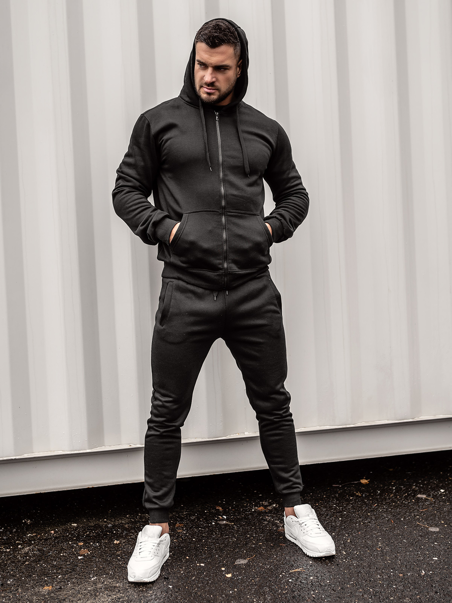 La tuta nera da uomo Bolf 10386 è un set di tuta sportiva, che comprende una felpa e pantaloni della tuta. La felpa si chiude con una cerniera e ha tasche esterne. I pantaloni sono regolabili in vita con un robusto guardolo e coulisse e hanno due tasche esterne. Un taglio semplice e aderente conferisce loro un aspetto sportivo. Questo modello è realizzzato in tessuto delicato e piacevole al tatto. Un set di tuta può essere una base universale per costruire stilizzazioni quotidiane o sportive. Sia la felpa che i pantaloni possono essere abbinati ad altri capi di abbigliamento, ottenendo così tante possibilità per creare styling di tutti i giorni. Il set si adatterà perfettamente con una T-shirt una leggera giacca mezza stagione o sportiva.