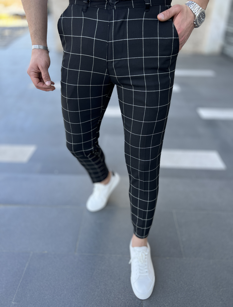 I pantaloni eleganti da uomo neri a quadri Bolf 0040 sono perfetti per gli amanti di un look elegante. I classici pantaloni con gamba lunga sono chiusi da una cerniera e da un bottone. Questo modello ha pratiche tasche per contenere gli oggetti essenziali e i documenti. Due sono situati sul retro e due sul davanti. Realizzati con materiali di altissima qualità, sono estremamente confortevoli e piacevoli al tatto. Il pantalone chino è intramontabile, comodo, pratico e fa sempre la sua bella figura. Se le abbinate a una giacca di pelle e a un t-shirt, otterrete un look perfetto per ogni occasione.