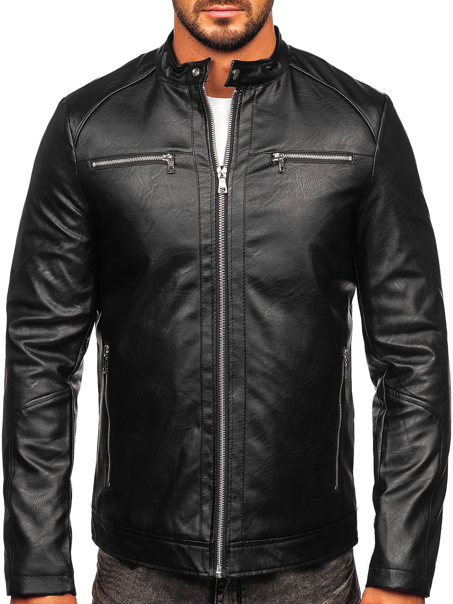Giacca in pelle da uomo Bolf 11Z8003-A di colore nero è un classico senza tempo nel mondo della moda. La giacca è chiusa con una cerniera e ha un collo alto con bottone automatico. Questa giacca in pelle, molto alla moda, è dotatadi pratiche tasche: due tasche laterali e due tasche sul petto con zip. La giacca è inoltre dotata di un'ulteriore tasca interna, senza chiusura. Il taglio aderente e semplice permette a tutti di avere un look eccezionale. Grazie alla sua versatilità, il prodotto può essere combinato con molti stili. Farà una fantastica combinazione con i jeans, pantaloni di tuta o chinos.