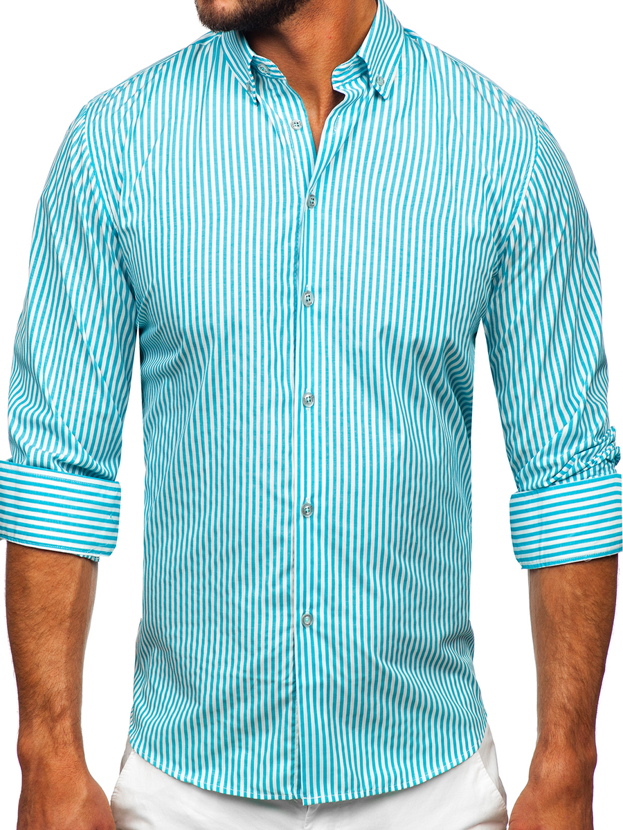 Commenti degli utenti su Camicia a righe a maniche lunghe da uomo turchese Bolf 22731