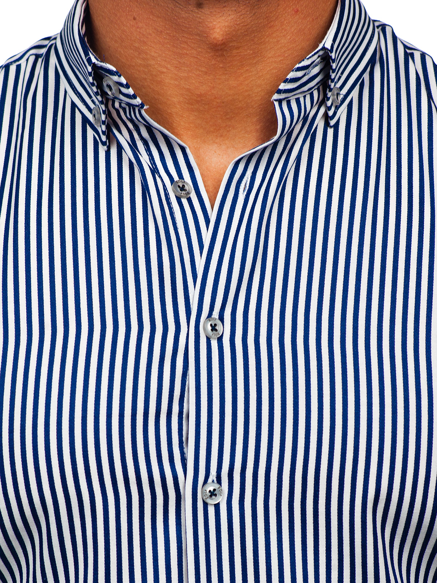 La camicia a maniche lunghe a righe da uomo Bolf 22731 è un must have che non dovrebbe mancare nel guardaroba di nessun uomo. Chiusura con bottoni, con polsini regolabili. Realizzata in 80% cotone e 20% poliestere, che lo rende molto piacevole al tatto e confortevole. Slancia perfettamente la silhouette e accentua le spalle. Questa camicia elegante è adatta per le uscite ufficiali, dove sarà fantastica in abbinamento con una giacca d'abito, ma anche per uno stile più casual, per un appuntamento o una festa di compleanno. Disponibile in undici colori.