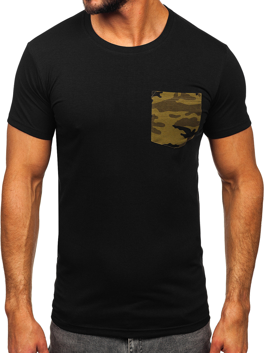 Commenti degli utenti su T-shirt con taschino con stampa mimetica da uomo nero-verde Bolf 8T85