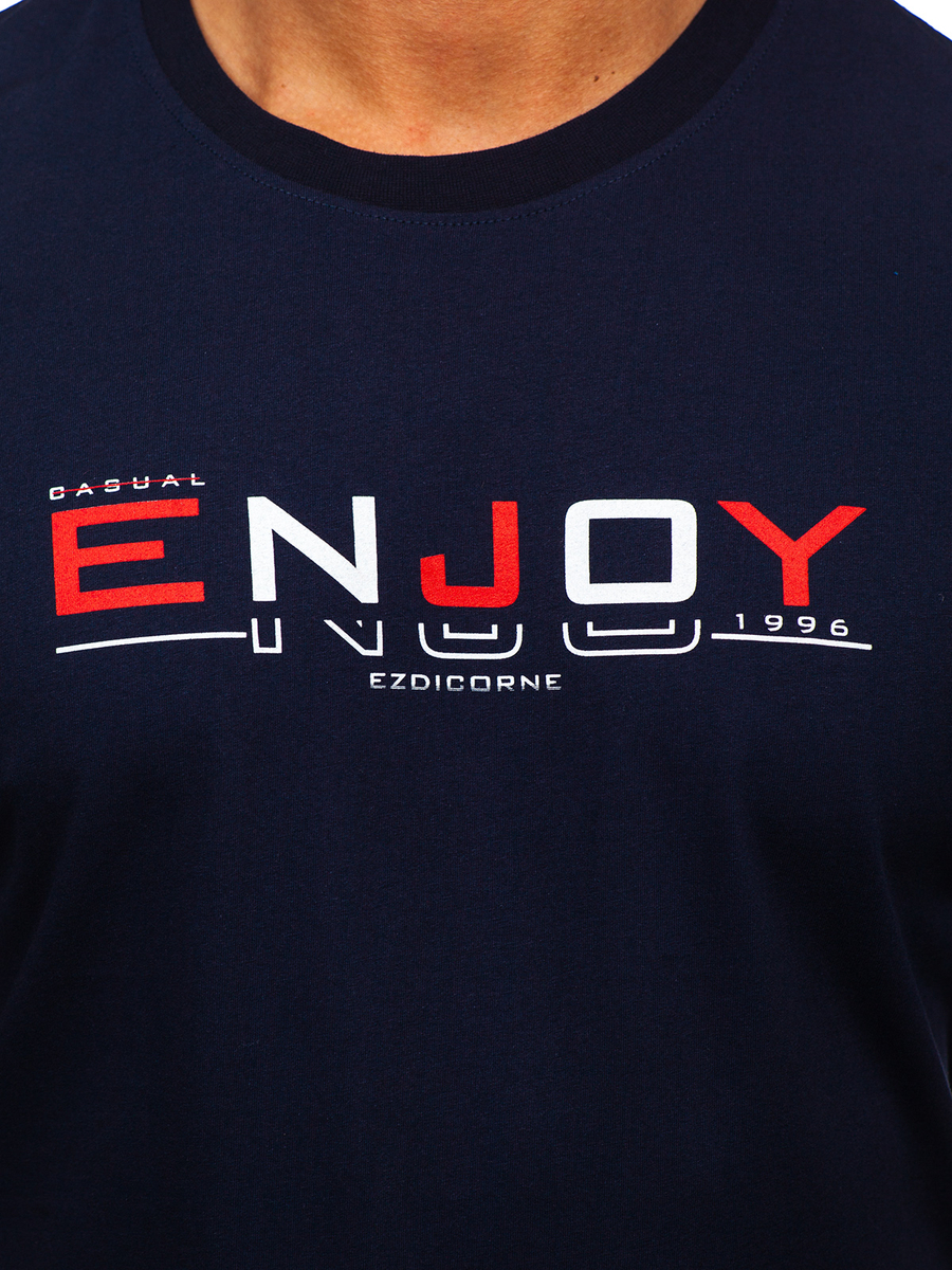 Commenti degli utenti su T-shirt in cotone con stampa da uomo blu Bolf 14739