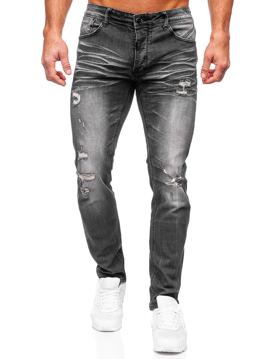 Pantaloni in jeans slim fit da uomo Bolf MP0032N di colore nero sono la scelta perfetta per gli uomini che non temono gli stili forti e che amano attirare l'attenzione. I pantaloni andranno benissimo con una camicia di flanella e una giacca tipo chiodo. Ideale per lo stile di tutti i giorni, per uscire con gli amici o per un appuntamento. Hanno due tasche sul davanti e sul retro e sono abbottonati. Le ombreggiature e gli abrasioni su tutta la gamba aggiungono un carattere unico.