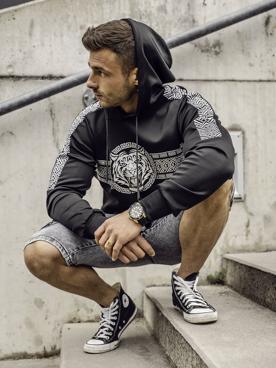 Ti piacciono i modelli interessanti e i colori scuri? La felpa nera da uomo Bolf 8B996 sarà la scelta perfetta per te. Si distingue per una grande stampa accuratamente realizzata con un motivo di tigre. Sta bene con i jogger e gilet sportivo. Il cappuccio regolabile offre protezione dal freddo e dalla pioggia. E le rifiniture sotto forma di guardoli consentono al materiale di adattarsi meglio al corpo. Inoltre, la felpa è dotata di una tasca a canguro ed è realizzata in un materiale morbido che offre un grande comfort quando viene indossata.