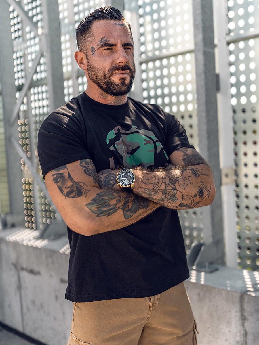 La t-shirt con stampa da uomo Bolf 192379A di colore nero è la soluzione ideale per gli uomini che apprezzano la moda e il comfort in un unico capo. Realizzato in cotone di alta qualità, è delicato e piacevole al tatto. Con la sua scollatura rotonda e il leggermente aderente, accentua perfettamente la silhouette senza limitare i movimenti. La stampa sul davanti aggiunge carattere e individualità. Che si tratti di uscire in città con gli amici, di andare al lavoro o di fare shopping, questo modello di t-shirt funzionerà alla perfezione. È facile da abbinare ad altri capi di abbigliamento. Sta bene sia con i jeans, joggers e i pantaloncini corti.