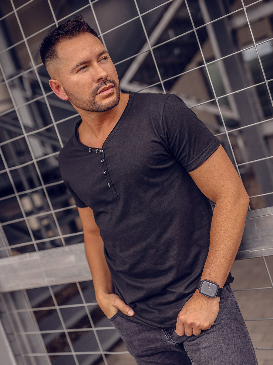 Commenti degli utenti su T-shirt da uomo nera in cotone tinta unita con scollo a V Bolf 4049A