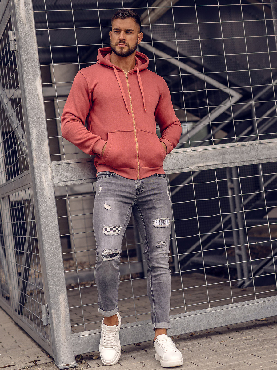 La felpa con cappuccio in colore salmone da Bolf 2008A da uomo è chiusa con una cerniera lampo. E' una felpa dal taglio classico, realizzata in tessuto soffice e piacevole al tatto. Il prodotto è caratterizzato dalla varietà di colori distintivi in cui è disponibile. Ha un cappuccio regolabile in tinta unita e due tasche laterali aperte. Il fondo della felpa e le maniche sono rifinite con forti guardoli. La felpa è consigliata principalmente agli appassionati di minimalismo e comfort nella moda. E 'ben cucita e confortevole. E' un must have assoluto in ogni armadio maschile. Un taglio semplice e classico in colori interessanti rende questo modello di felpa il culmine perfetto di molti stili quotidiani, street e sportivi. La felpa da uomo, liscia e con la cerniera, è una proposta che vale la pena di avere nel proprio guardaroba non in una o più versioni di colore. Dal classico nero, passando per blu navy e rosso, a un po 'più stravagante nei colori del giallo, arancione o rosa. La felpa funzionerà in molte circostanze in qualsiasi momento dell'anno.