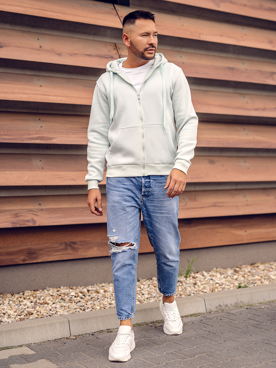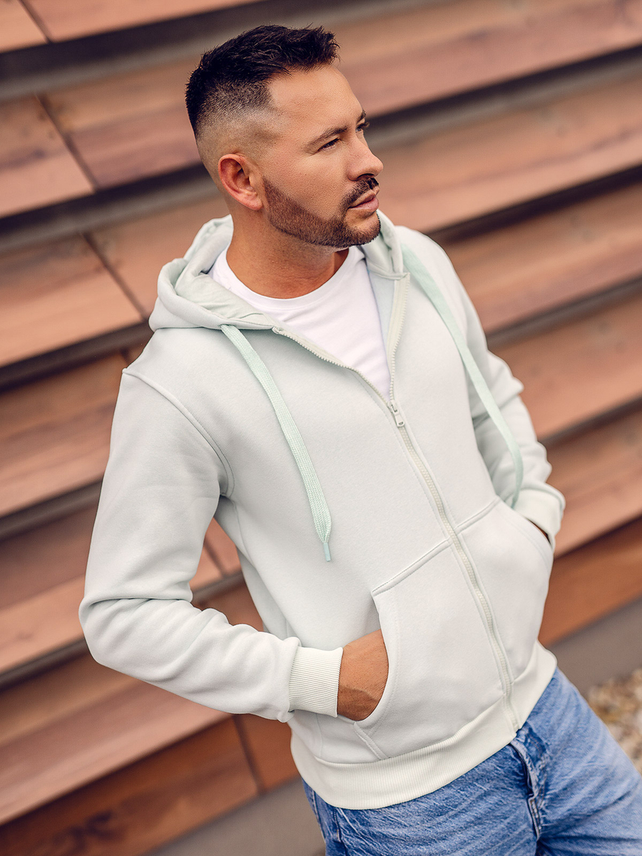 La felpa maschile con cappuccio Bolf 2008A in colore verde menta chiara, chiusa con cerniera. E' una felpa dal taglio classico, realizzata in tessuto soffice e piacevole al tatto. Il prodotto è caratterizzato dalla varietà di colori distintivi in cui è disponibile. Ha un cappuccio regolabile in tinta unita e due tasche laterali aperte. Il fondo della felpa e le maniche sono rifinite con forti guardoli. La felpa è consigliata principalmente agli appassionati di minimalismo e comfort nella moda. E 'ben cucita e confortevole. E' un must have assoluto in ogni armadio maschile. Un taglio semplice e classico in colori interessanti rende questo modello di felpa il culmine perfetto di molti stili quotidiani, street e sportivi. La felpa da uomo, liscia e con la cerniera, è una proposta che vale la pena di avere nel proprio guardaroba non in una o più versioni di colore. Dal classico nero, passando per blu navy e rosso, a un po 'più stravagante nei colori del giallo, arancione o rosa. La felpa funzionerà in molte circostanze in qualsiasi momento dell'anno.