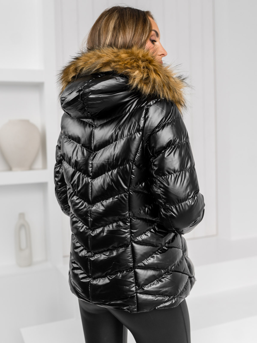 Commenti degli utenti su Giubbotto invernale trapuntato con cappuccio da donna nero-marrone Bolf 5M3138