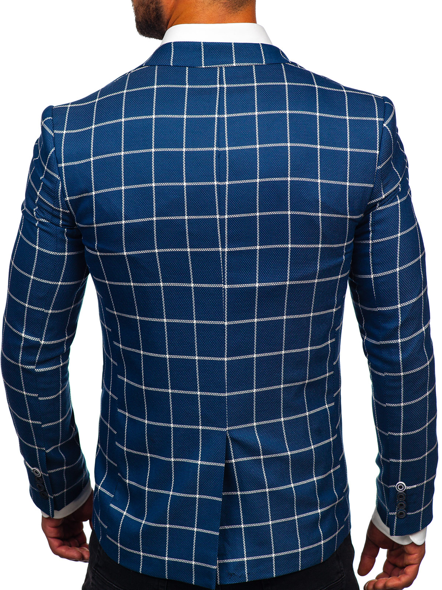 Commenti degli utenti su Giacca d'abito a scacchi casual da uomo azzurro Bolf 003