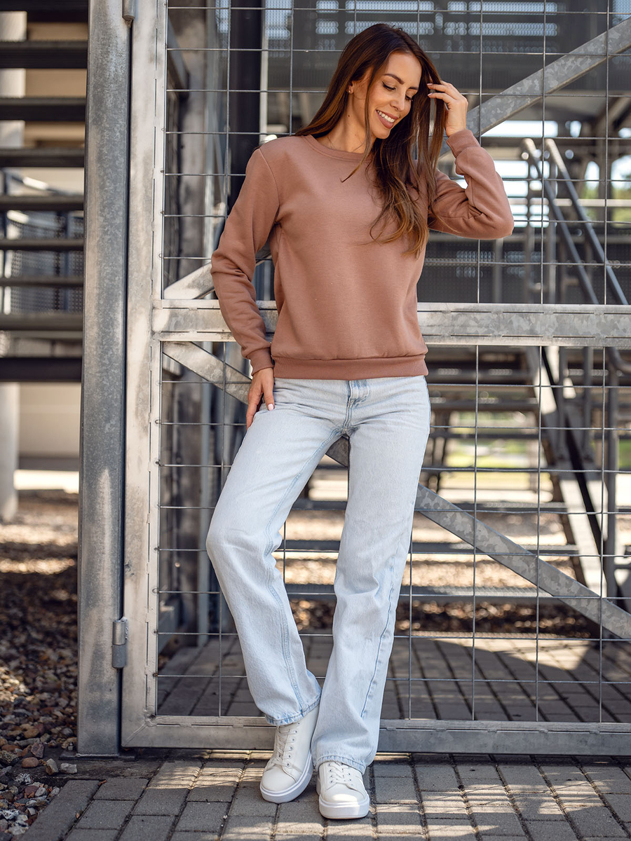 La felpa da donna Bolf W01 è realizzata in uno stile minimalista. Il taglio classico e semplice rende la felpa adatta a quasi tutte le figure femminili. La felpa è liscia, realizzata in un piacevole tessuto per tuta, infilata attraverso la testa. Nella parte inferiore e sulle maniche finiscono con ampi bordi. La felpa non ha il cappuccio, ha una scollatura piccola e tonda, con un bordo dello stesso colore. Il prodotto di base funzionerà in combinazione con molte altre parti dell'abbigliamento.
