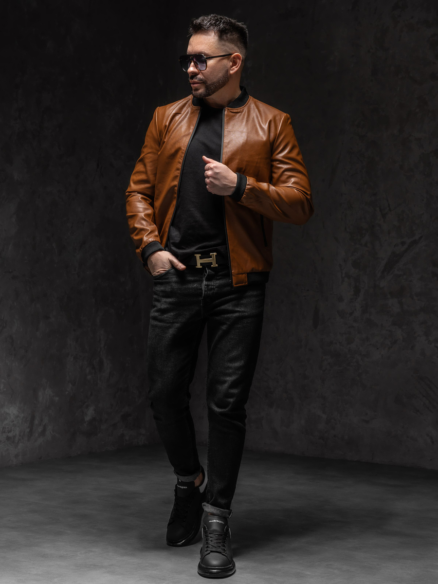 Giacca in pelle tipo bomber marrone da uomo Bolf 6803A1 è l'opzione perfetta per gli uomini che desiderano esprimere il proprio stile individuale. Realizzata con materiali di alta qualità, è durevole e destinata a durare per molte stagioni. Il taglio classico e il colore nero conferiscono un'estrema eleganza. Si tratta di un capo atemporale del guardaroba maschile che si abbina sia a stili casual che a quelli più formali. Il modello può essere indossato sia in modo casual con i jeans, sia per le occasioni speciali, abbinato a una camicia e a dei pantaloni chino.