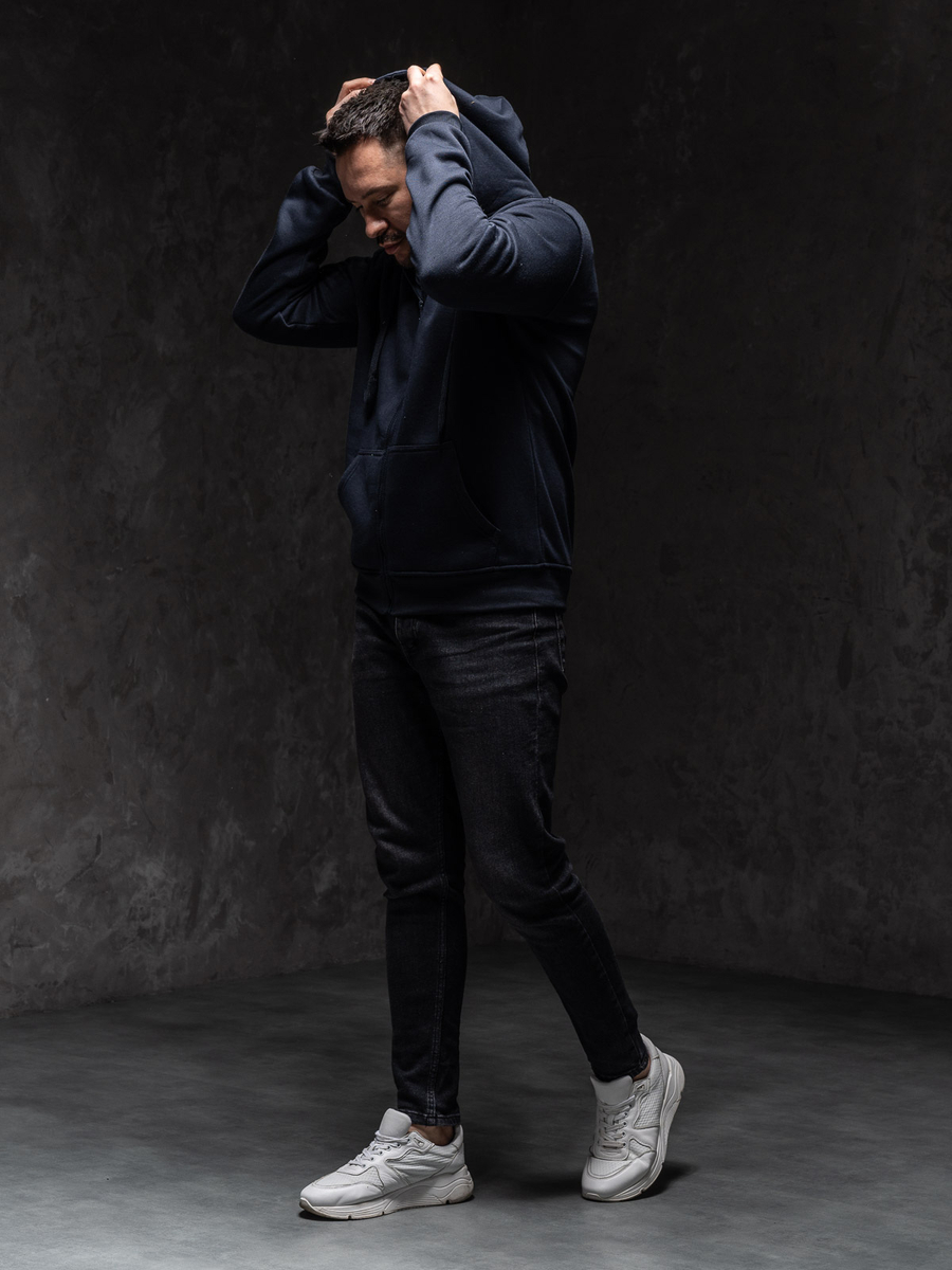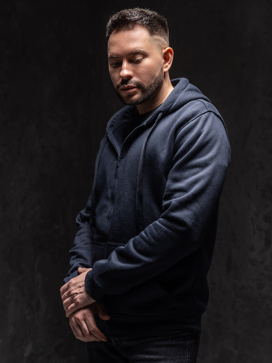 La felpa maschile con cappuccio da uomo Bolf 2008A1 in colore blu inchiostro, chiusa con cerniera. E' una felpa dal taglio classico, realizzata in tessuto soffice e piacevole al tatto. Il prodotto è caratterizzato dalla varietà di colori distintivi in cui è disponibile. Ha un cappuccio regolabile in tinta unita e due tasche laterali aperte. Il fondo della felpa e le maniche sono rifinite con forti guardoli. La felpa è consigliata principalmente agli appassionati di minimalismo e comfort nella moda. E 'ben cucita e confortevole. E' un must have assoluto in ogni armadio maschile. Un taglio semplice e classico in colori interessanti rende questo modello di felpa il culmine perfetto di molti stili quotidiani, street e sportivi. La felpa da uomo, liscia e con la cerniera, è una proposta che vale la pena di avere nel proprio guardaroba non in una o più versioni di colore. Dal classico nero, passando per blu navy e rosso, a un po 'più stravagante nei colori del giallo, arancione o rosa. La felpa funzionerà in molte circostanze in qualsiasi momento dell'anno.