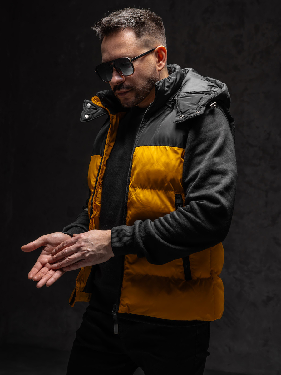 Il gilet trapuntato da uomo con cappuccio Camel Bolf 1189A1 è un prodotto trapuntato. Il gilet include un cappuccio staccabile che protegge perfettamente dall'umidità nei giorni di pioggia. Questo modello è chiuso con lo zip comodo. Il gilet ha il collo alto. Le tre tasche chiuse a zip sono un vantagio del gilet. Due ampie tasche esterne possono funzionare come protezione per le mani dal freddo e dal vento durante le giornate fredde. La tasca interna è adatta per imporrere le chiavi, il telefono, i documenti o altre piccole cose utili. Il cappuccio ha il coulisse che garantisce la possibilità di regolazione. Ciò lo rende un'ottima protezione contro il freddo e la pioggia.
