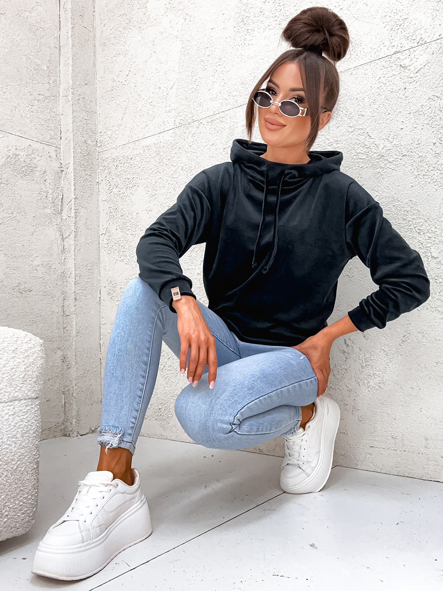 Commenti degli utenti su Felpa in velluto con cappuccio da donna nero Bolf 8270
