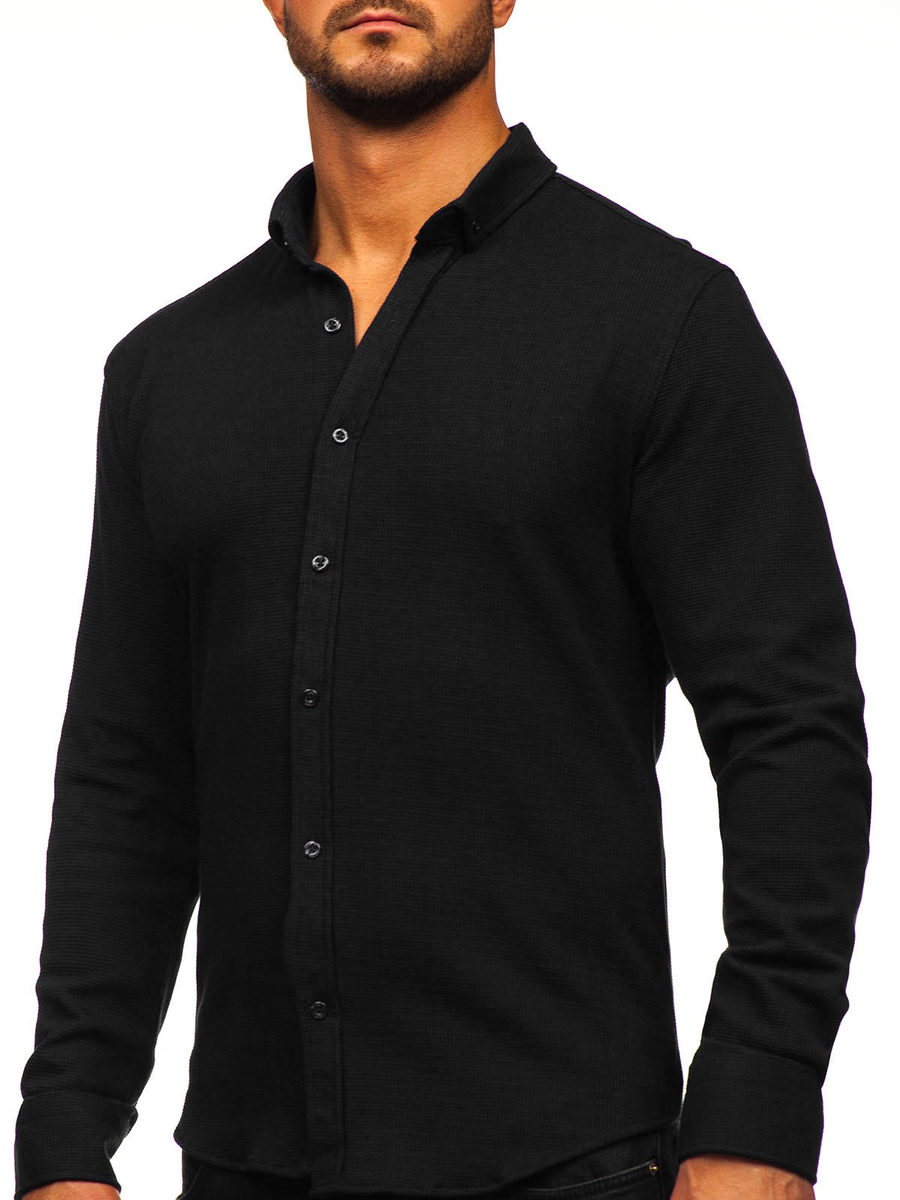 Commenti degli utenti su Camicia in lino a maniche lunghe per uomo nero Bolf 506