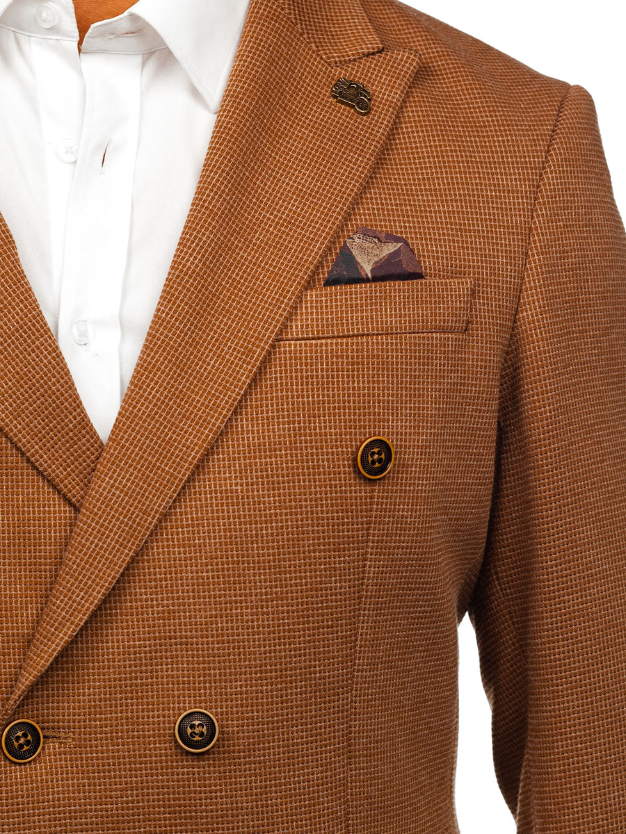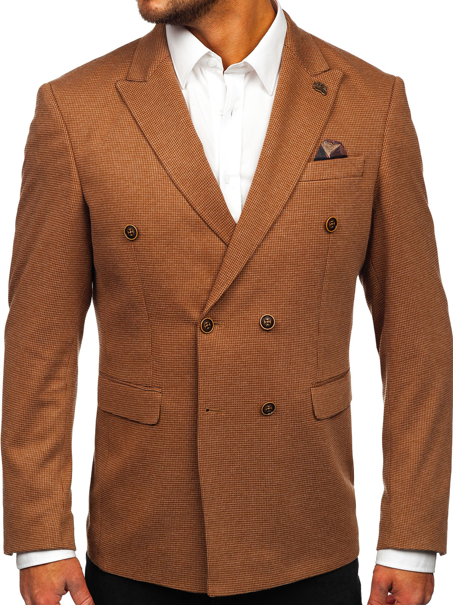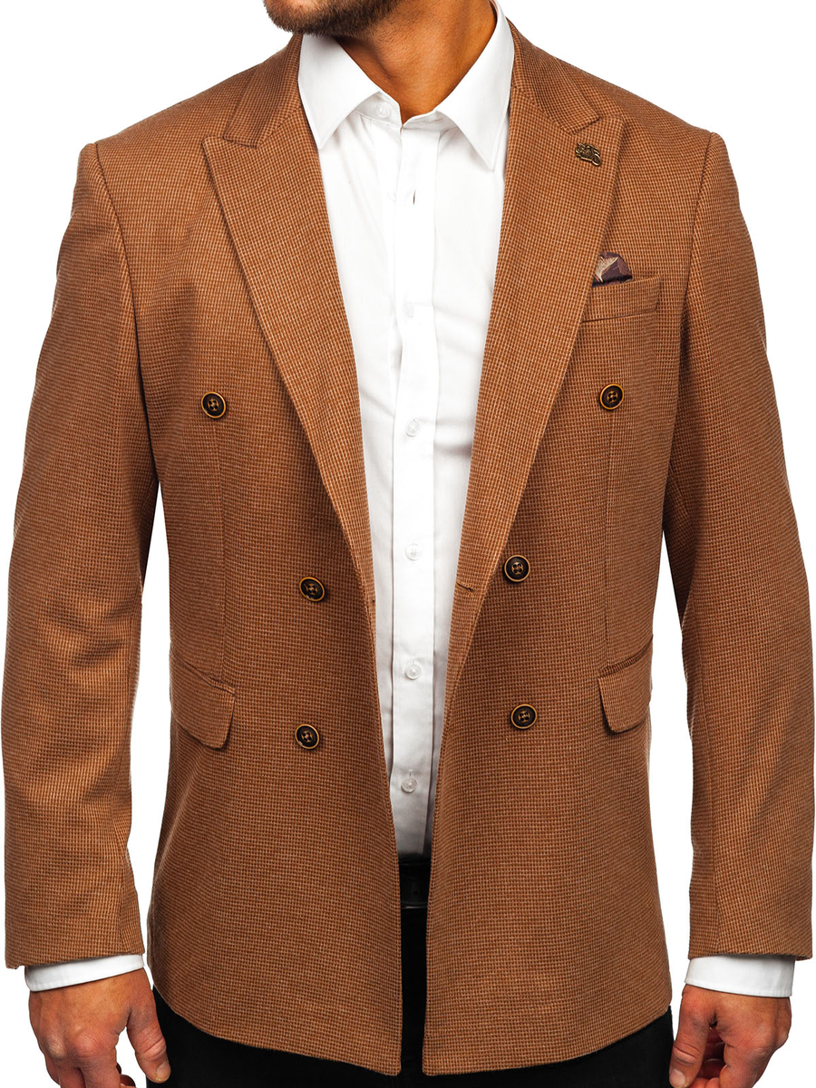 Commenti degli utenti su Giacca d'abito doppiopetta casual da uomo marrone Bolf 002